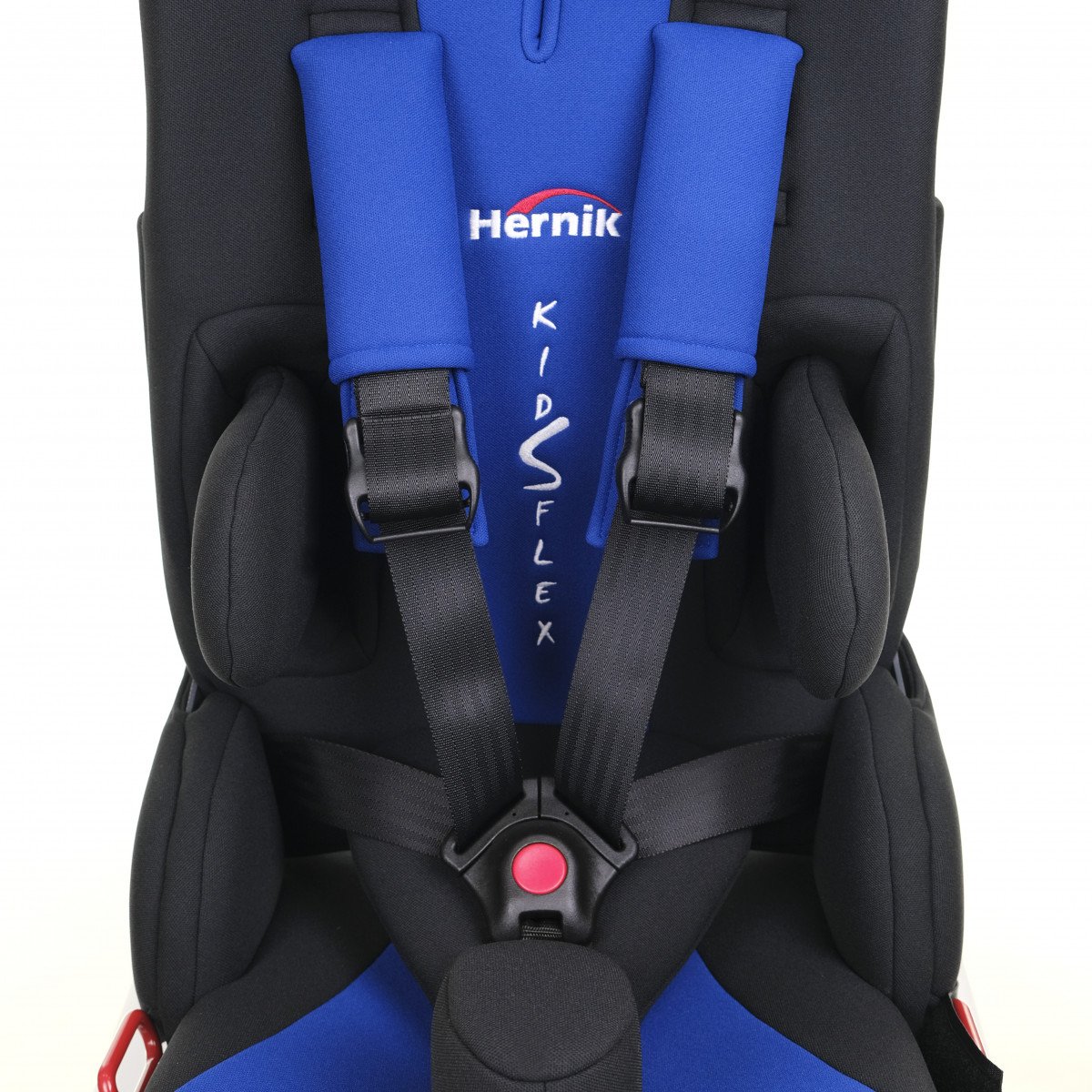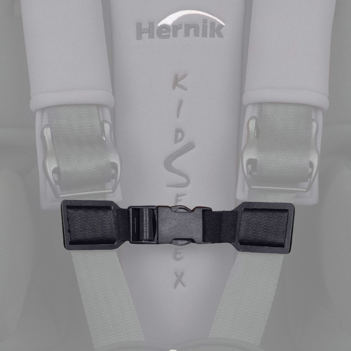 Hernik KidsFlex также оснастили 5-точечным ремнём безопасности, который обеспечивает надёжное удержание ребёнка в кресле. Кроме того, кресло совместимо с автомобильным ремнём, что дополнительно усиливает его защитные свойства.
