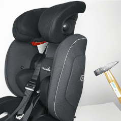 Кресло соответствует международным стандартам безопасности, включая UN/ECE R 44/04, DEKRA и FMVSS 213, что подтверждает его эффективность и надёжность. Оно прошло множество краш-тестов, демонстрируя отличные результаты в тестировании на защиту детей от ударов и травм.