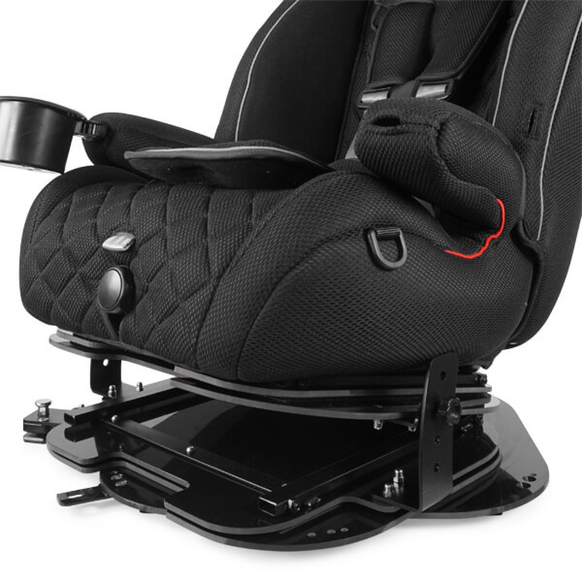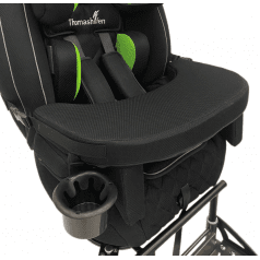 Мягкий подголовник регулируется по высоте с помощью рычага на спинке. Плечевые ремни с мягкой накладкой также возможно отрегулировать по мере роста пользователя. Подстаканник устанавливается как с левой, так и с правой стороны.