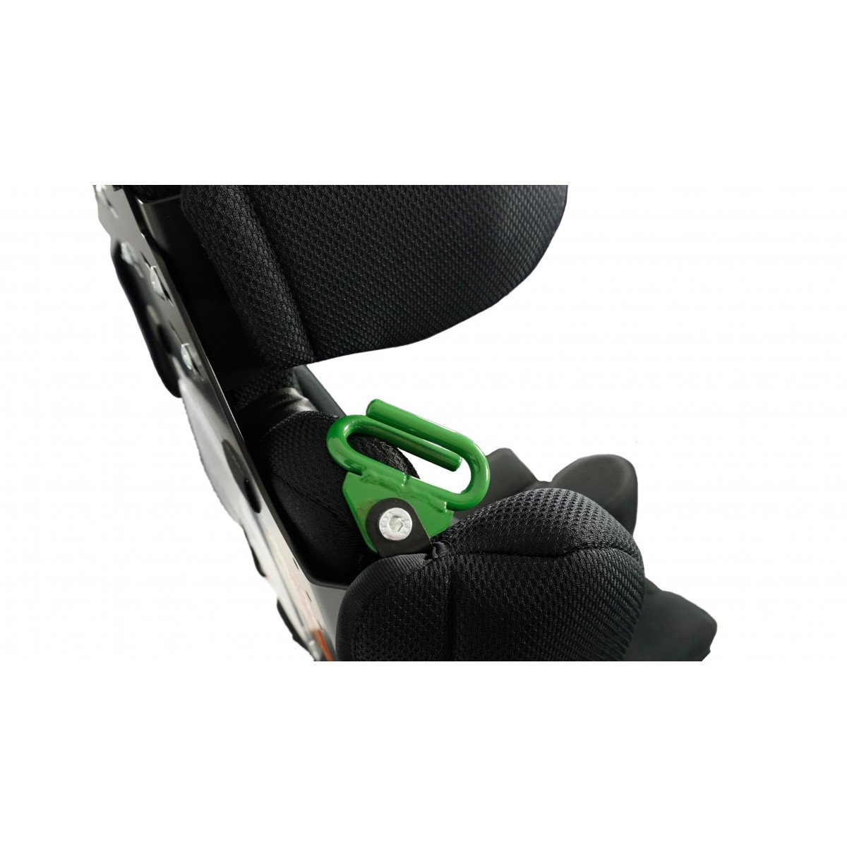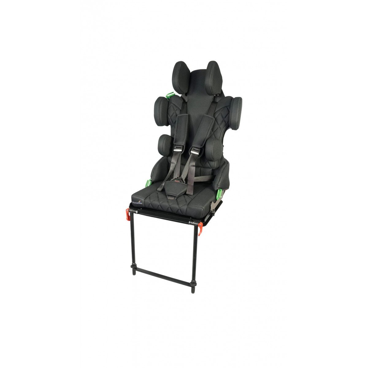 Для правильной поддержки предусмотрены плавная регулировка высоты спинки, анатомичный подголовник и опоры для бёдер. Важной особенностью модели являются плечевые поддержки, которые стабилизируют положение ребёнка и предотвращают излишние наклоны во время движения. Дополнительно могут устанавливаться боковые поддержки с откидным механизмом, усиливающие фиксацию туловища.