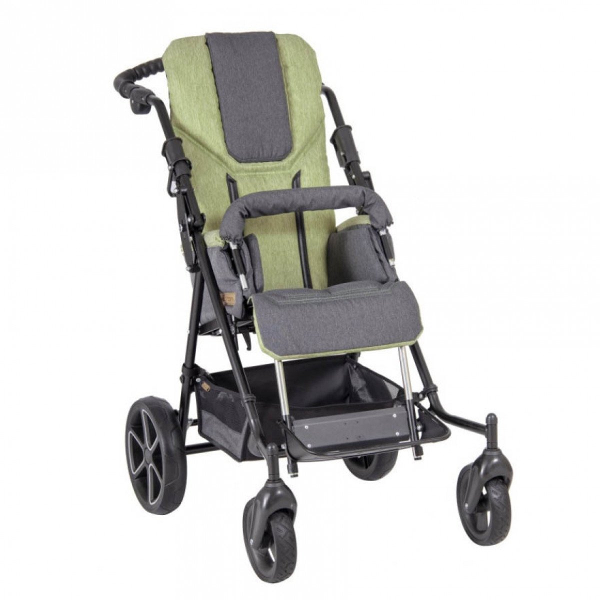 Коляска оборудована передними и задними колёсами, созданными с защитой от проколов. Колёса выполнены из литых материалов, но в случае необходимости, их можно заменить на пневматические. Более того, для достижения максимального комфорта, возможно оснащение коляски передними колёсами увеличенного диаметра, что позволяет упростить передвижение по сложным или неровным поверхностям.