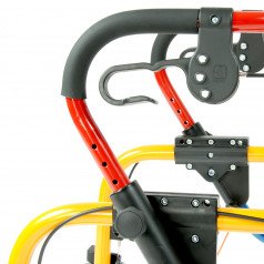 Ходунки оснащены четырьмя колёсами увеличенного диаметра. Передние колёса являются саморегулирующимися, что обеспечивает плавное движение и лучшую адаптацию к различным условиям. Колёса изготовлены из антискользящего материала — пенополиуретана. Этот материал не требует специального ухода и отлично справляется с различными покрытиями, будь то асфальт, плитка или травяные участки. Независимая тормозная система с ручными тормозами и фиксатором обеспечивает надёжное удержание ходунков на месте во время остановок.