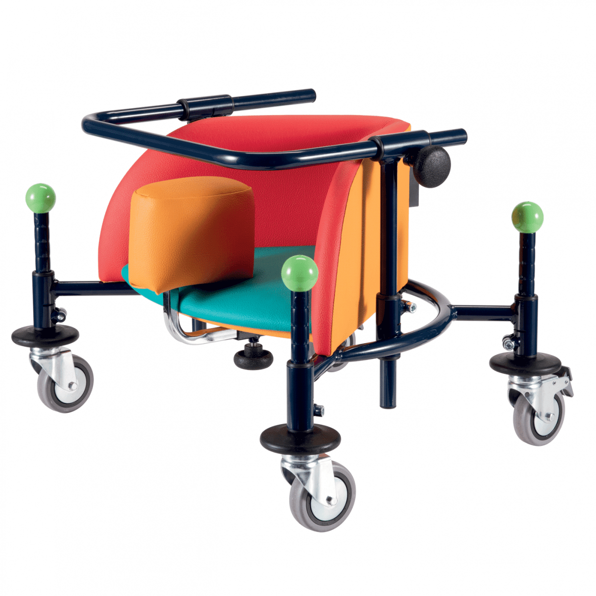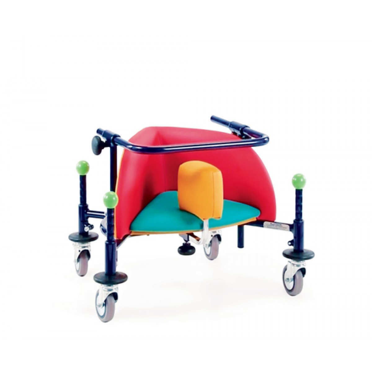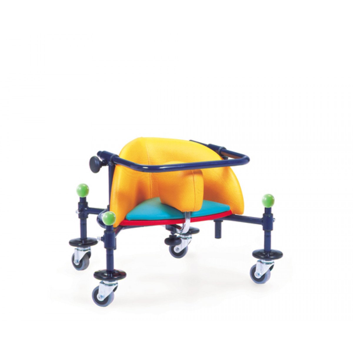 Ormesa Birillo обеспечивает самое удобное и правильное позиционирование с правильным ощущением себя в пространстве. Треугольное сиденье предотвращает переразгибание бёдер и туловища и помогает ребёнку-инвалиду держать туловище и голову ровно. Благодаря этому сохраняется правильная поза и импульс движения. Рекомендуется для детей в возрасте от 1,5 до 8 лет. Абдукционный блок сохраняет положение таза, что в свою очередь стимулирует движение рук и вращение туловища. Birillo играет важную роль в развитии перцептивных, моторных и визуальных функций ребёнка, необходимых для познания и овладения пространством.