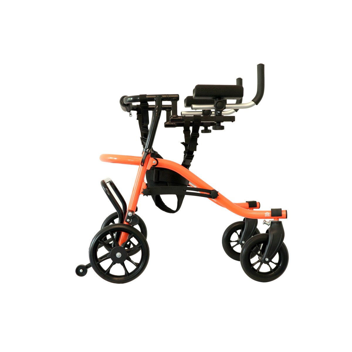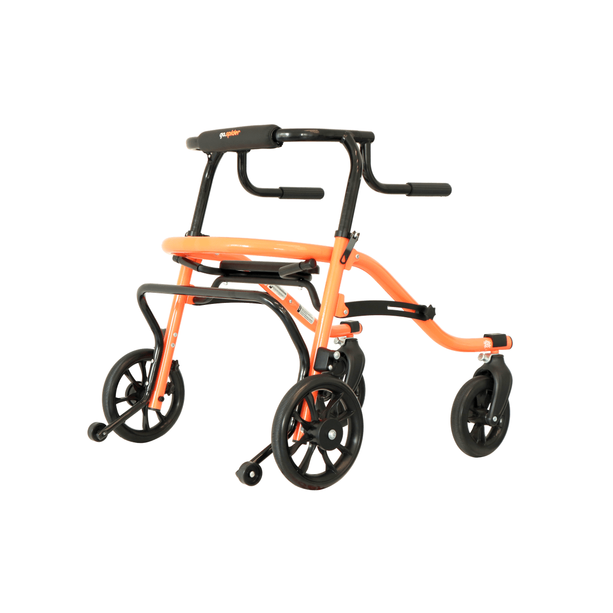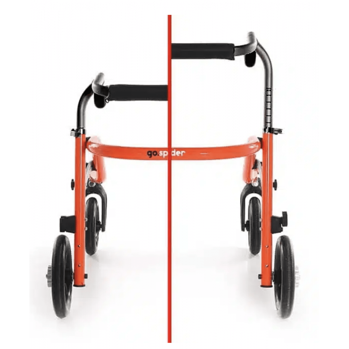 Ортопедические ходунки Go.Spider имеют функциональные передние колёса с возможностью блокировки направления движения, что даёт пользователю больший контроль во время движения. Задние колёса ходунков Go.Spider оснащены регулируемым замедлителем, который снижает скорость движения при затягивании винта. Они также имеет защиту от неконтролируемого движения назад, что оказывает существенное влияние на безопасность при использовании.