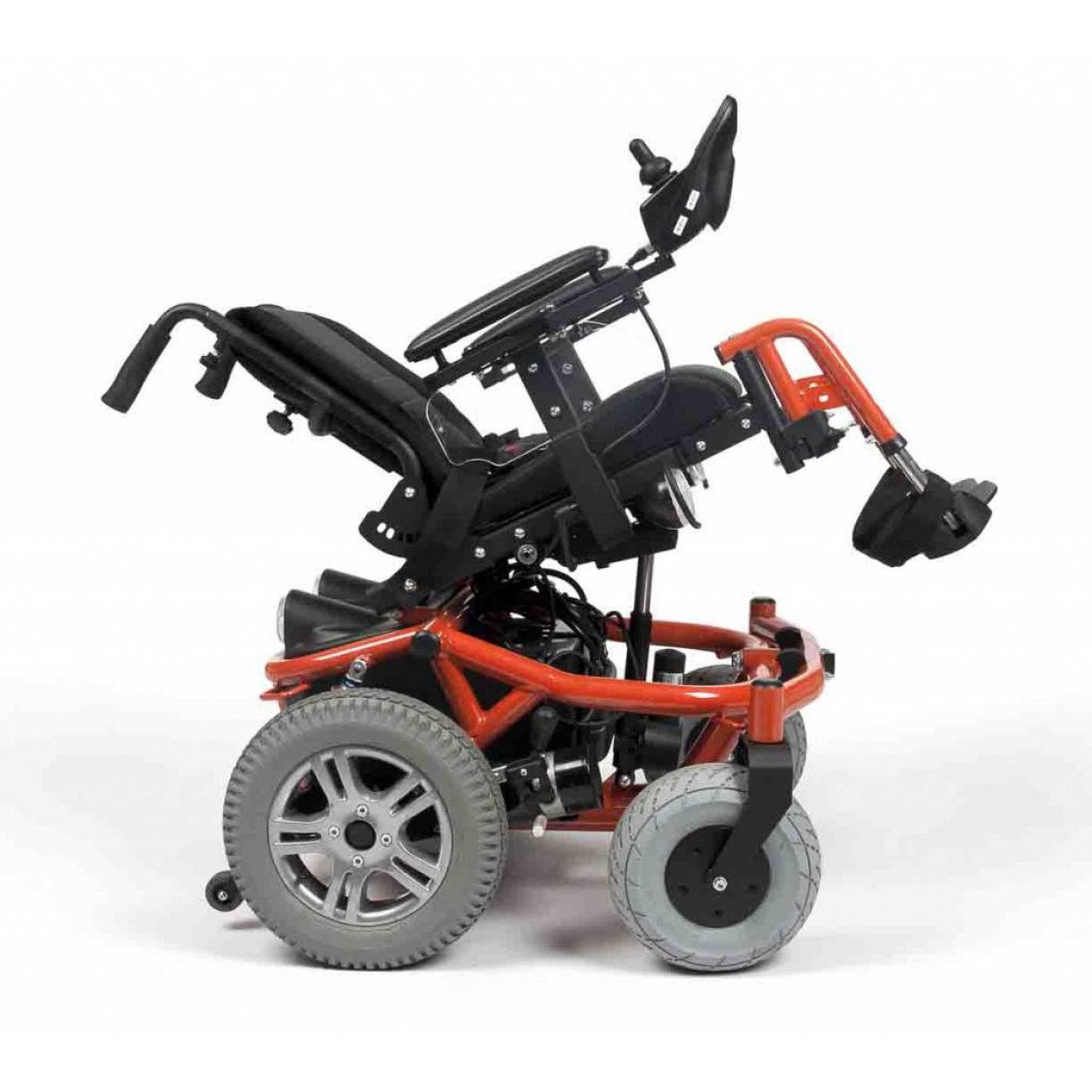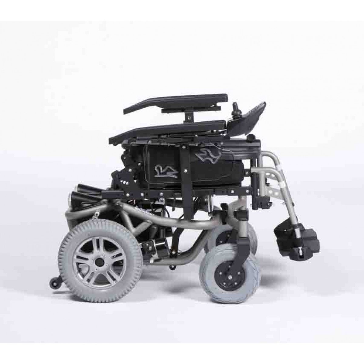 Данная модель оснащена удобным анатомическим сидением с воздухопроницаемым покрытием, которое устраняет проблему потоотделения и позволяют длительное время находиться в кресле без вреда для здоровья. Мощный двигатель, работающий от аккумулятора, способен развивать скорость от 6 до 10 км/час и преодолевать расстояния 35 км без подзарядки. Заряжать аккумулятор можно от электросети 220 В. Так же коляска может быть оснащена двигателем, который позволит развить скорость до 14 км/час.
