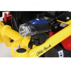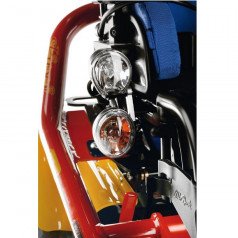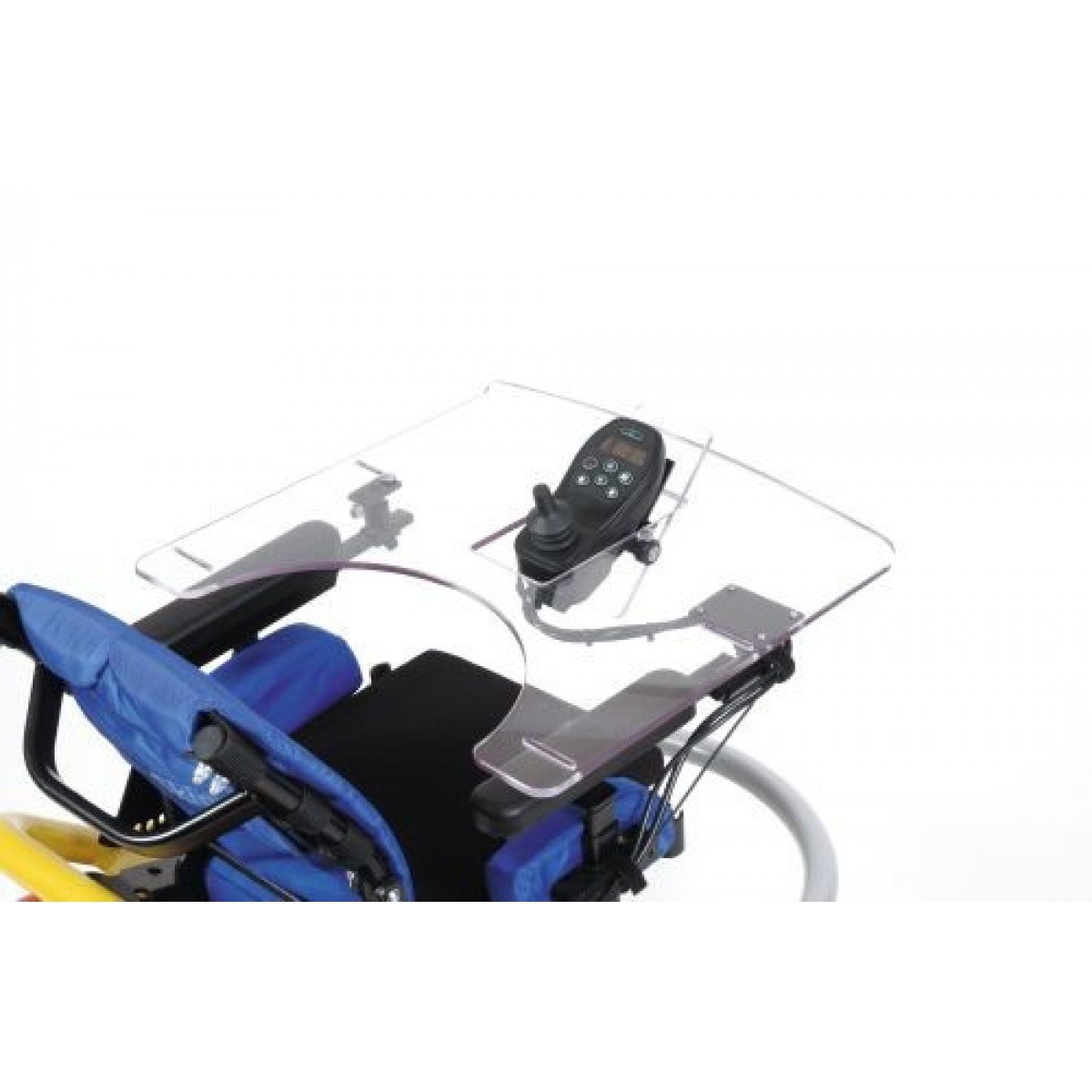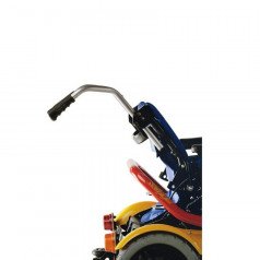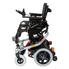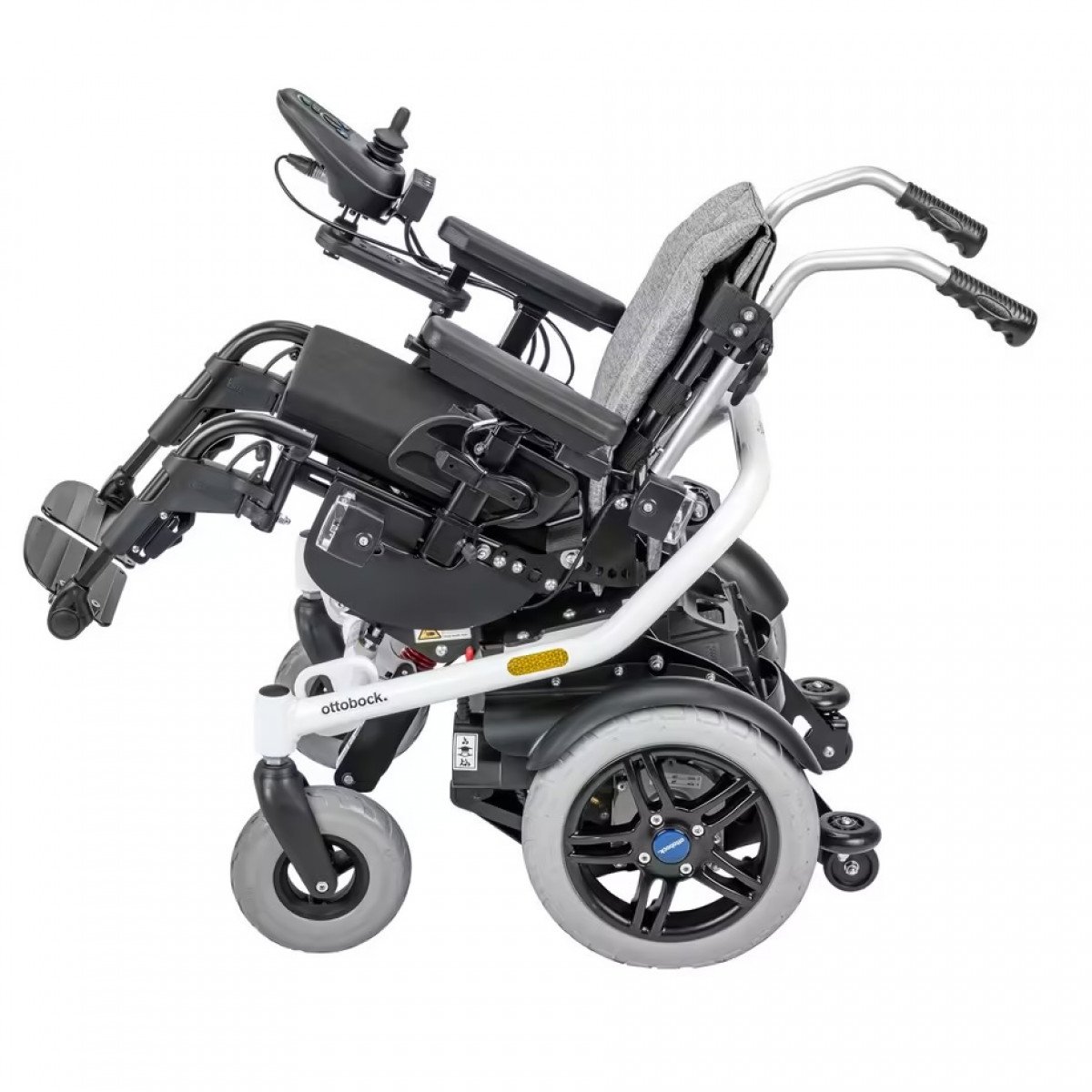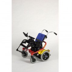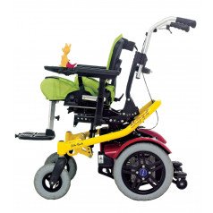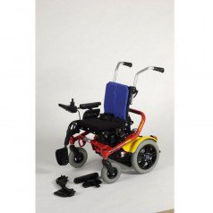 Коляска имеет в своём оснащении легкосъёмные подлокотники и подножки для удобного подъезда к мебели и пересаживания. Также их легко настроить по высоте. Глубина и ширина сиденья, а также подножки регулируются под индивидуальные нужны ребёнка. На подлокотнике установлен многопозиционный джойстик для самостоятельного управления коляской. Его положение можно регулировать по горизонтали и высоте, устанавливать слева или справа. Аккумулятора хватит на 30 км движения без подзарядки.