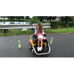 Складная конструкция и компактные размеры позволяют перевозить коляску в багажнике легкового автомобиля и брать с собой в путешествия. Модель имеет широкий набор регулировок, позволяющий адаптировать кресло под анатомические особенности ребёнка. Коляска оснащена возможностью регулировки положения кресла и спинки в соответствии с нуждами ребёнка – от активного положения сидя, в котором мышцы ребёнка работают для поддержания позы, до пассивного положения, в котором ребёнок может отдохнуть и поспать во время прогулки. Более того, модель может быть укомплектована механическим либо электрическим приводом регулировки угла наклона сидения, а также адаптером, с помощью которого можно устанавливать различные функциональные сидения для детей, что не могут поддерживать сидячее положение и нуждаются в дополнительных фиксаторах.
