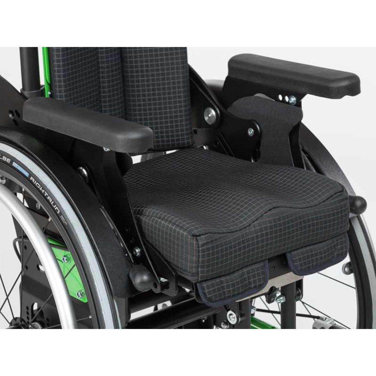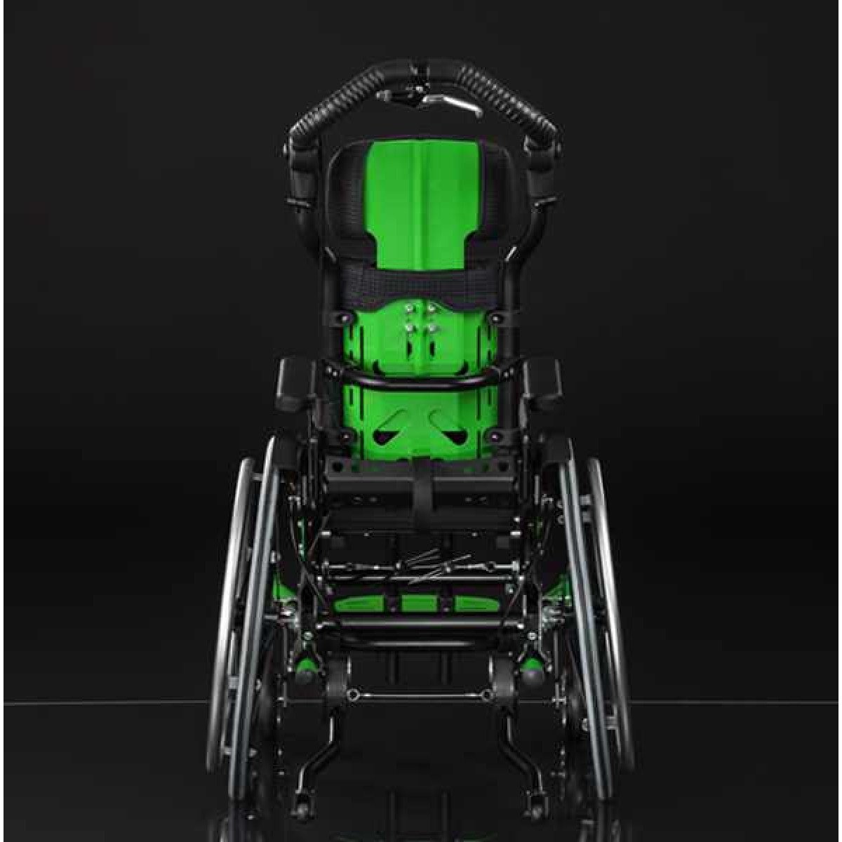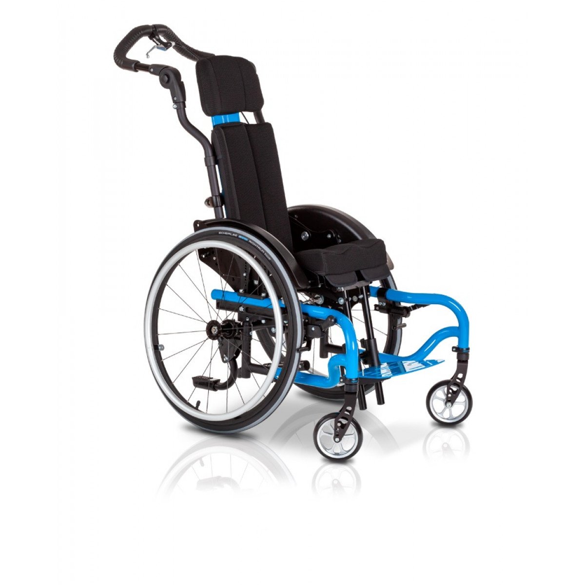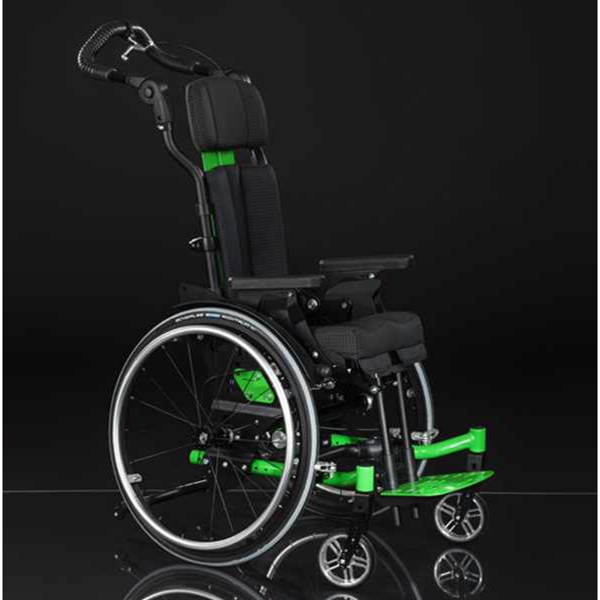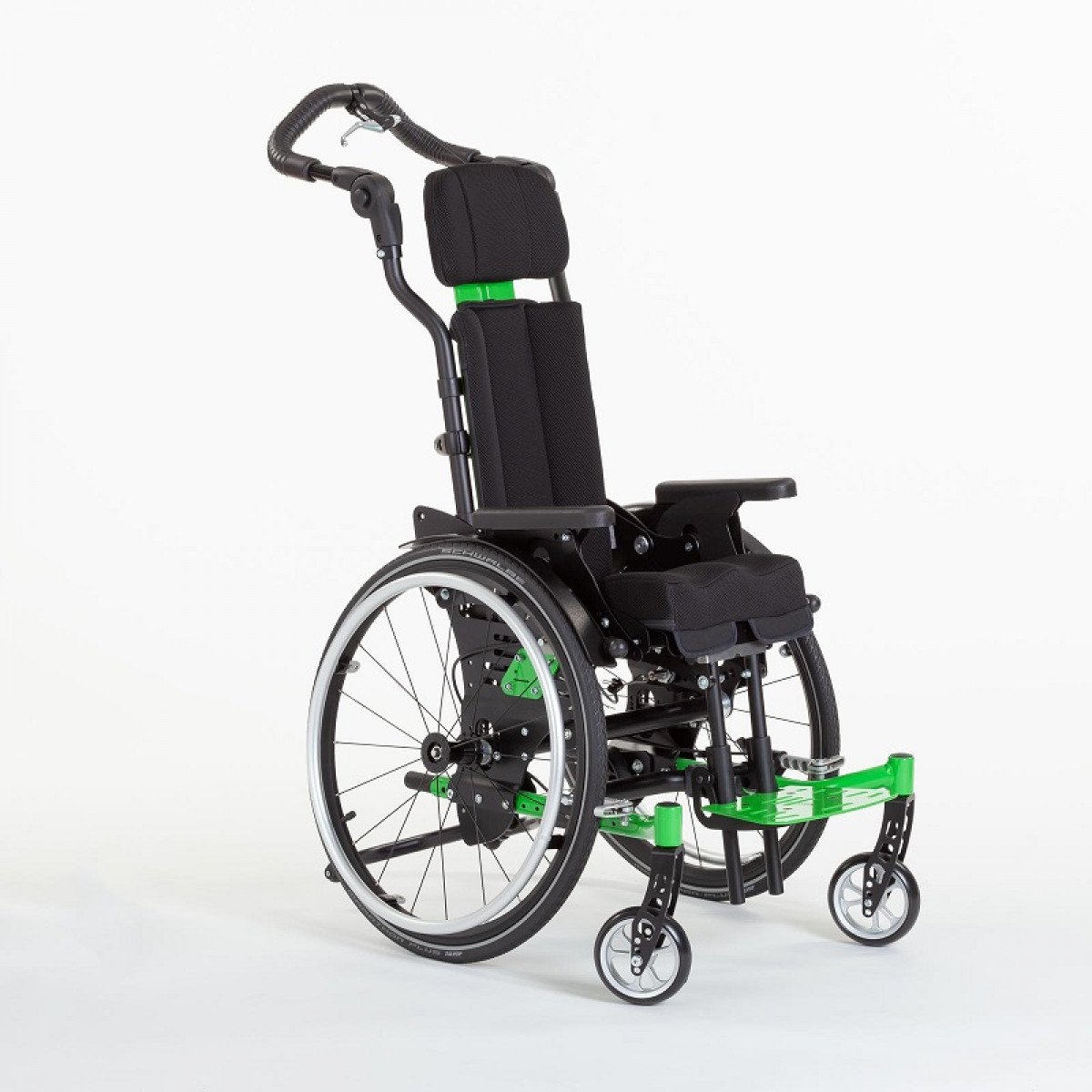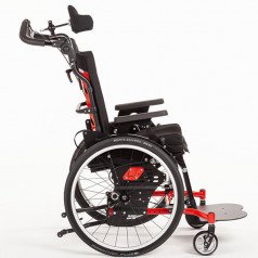 Ось ведущего колеса установлена на подшипниковых опорах, что обеспечивает возможность её перемещения в продольном направлении по пяти ступеням. Эта возможность регулировки позволяет адаптировать "степень активности" в зависимости от состояния ребёнка и его потребностей. А регулировка угла сиденья сконструирована таким образом, что точка поворота находится рядом с центром тяжести и её положение при регулировке угла остаётся неизменным.