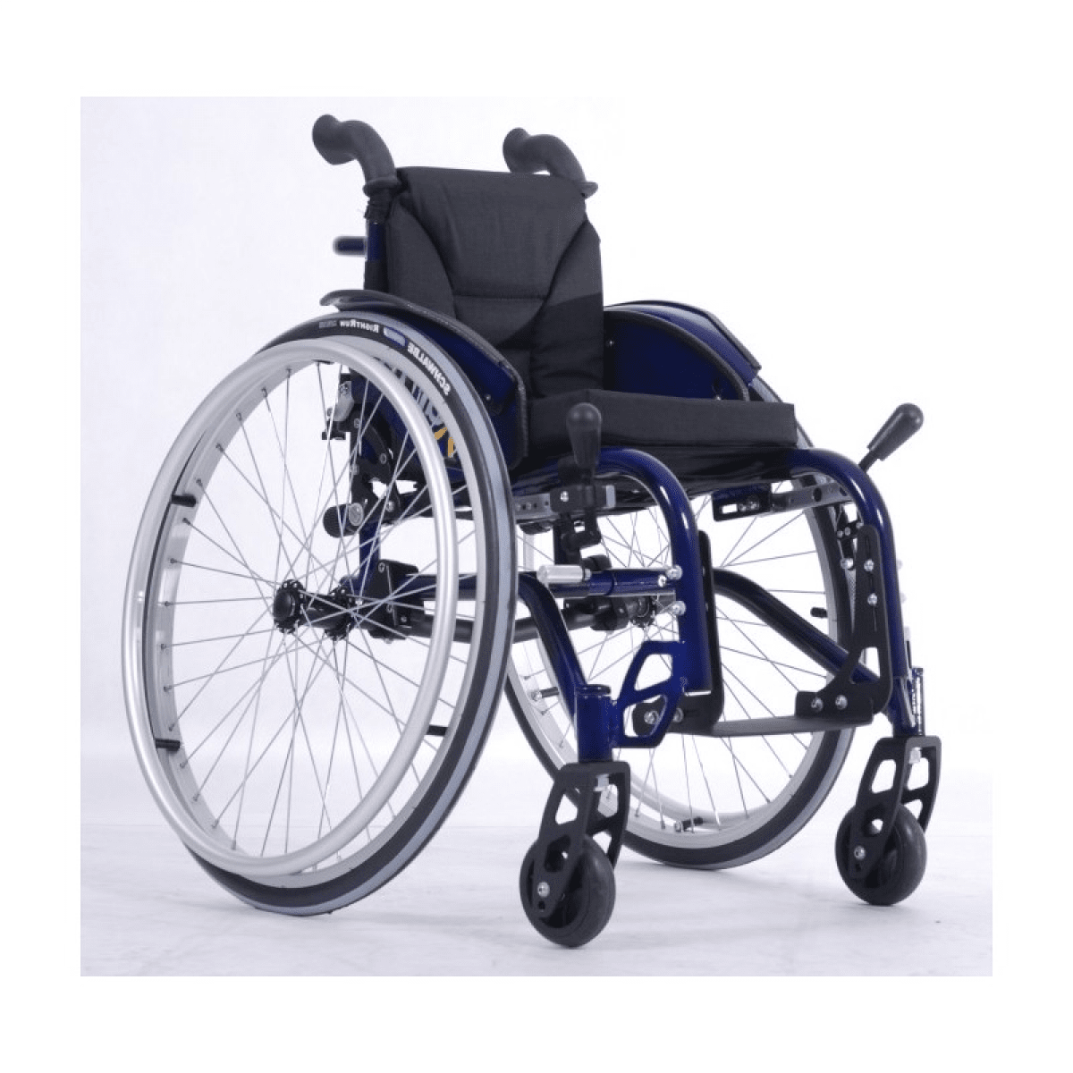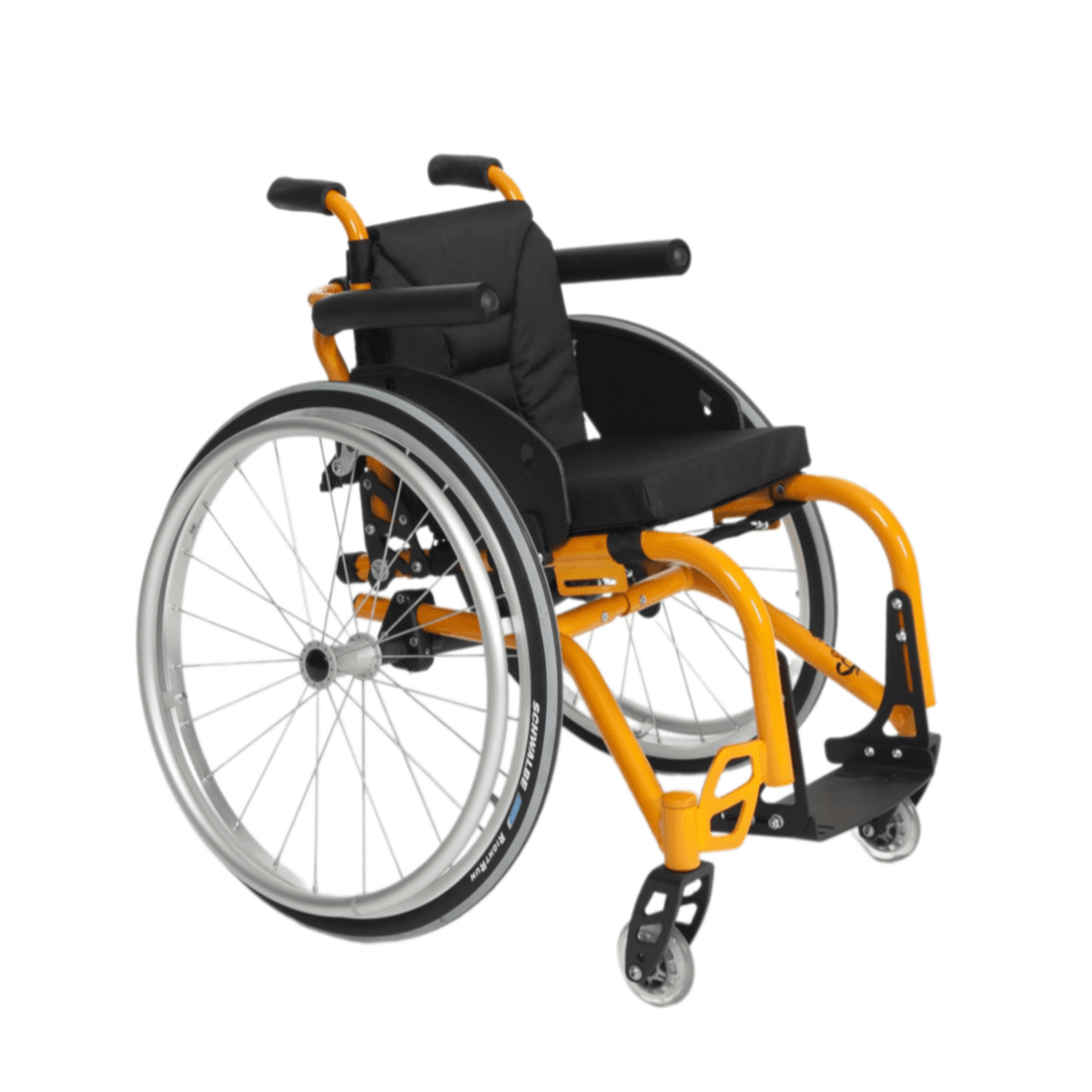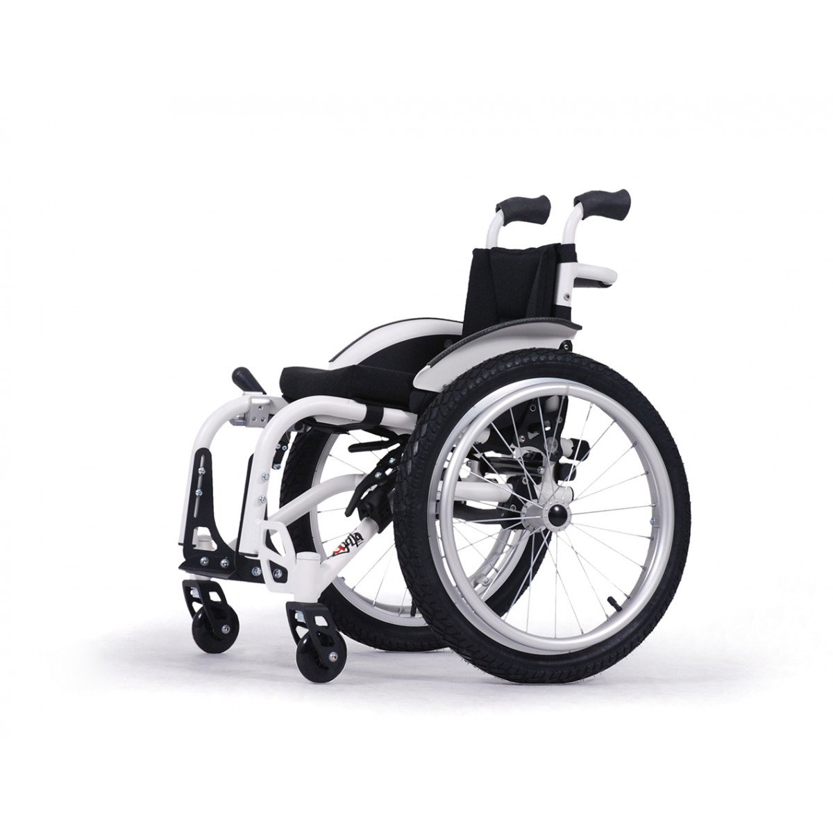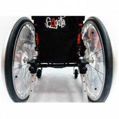 Идеально сбалансированный центр тяжести и максимального упрощённая конструкция делает коляску очень маневренной и мобильной. Уникальная конструкции рамы делает коляску безопасной и долговечной, а высокопрочный алюминиевый сплав обеспечивает изделию минимальный вес 9 кг. По заказу клиента задние колёса могут устанавливаться на коляску со смещённым центром тяжести и различным углом развала в 4°, 6°, 8°, 10°.