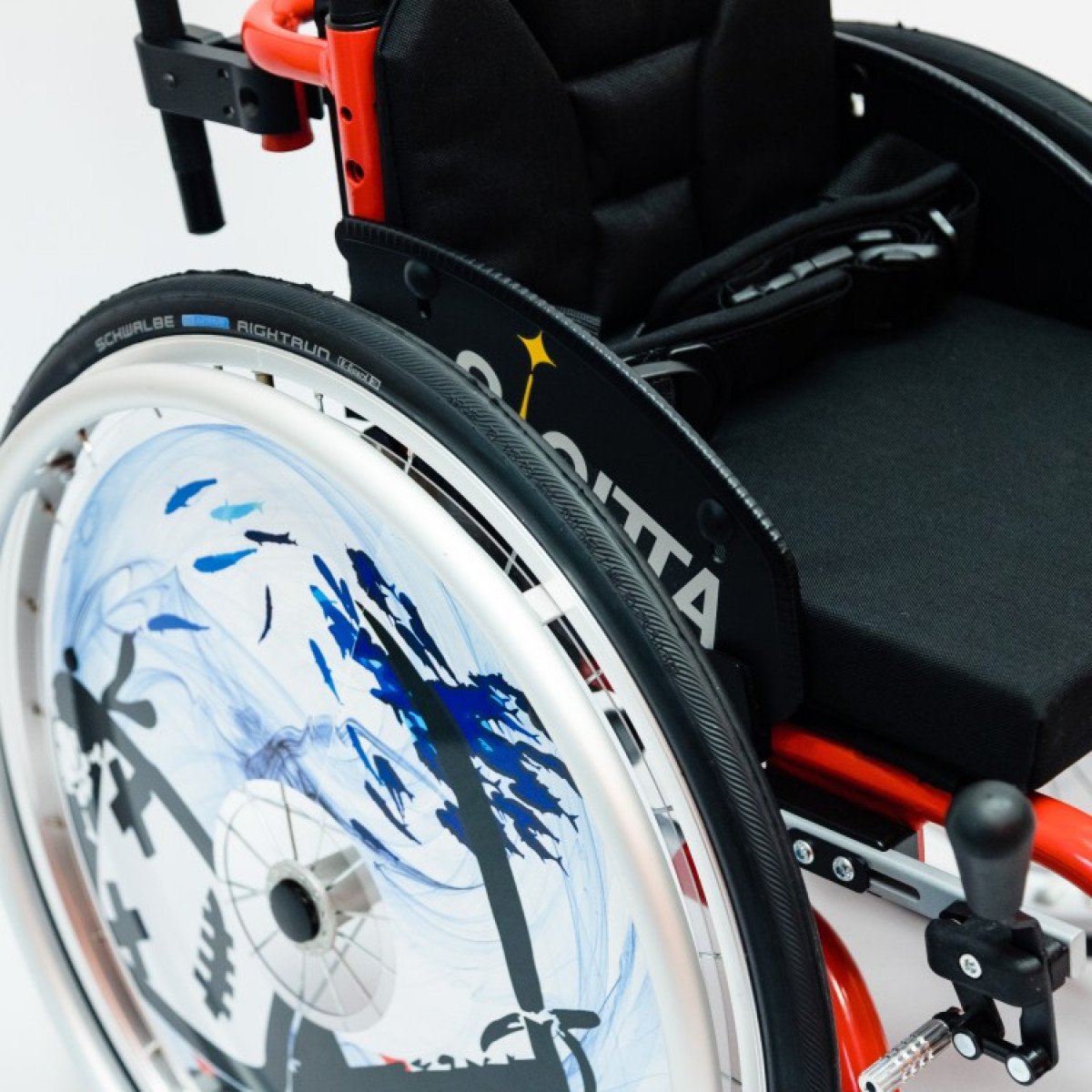 Съёмный чехол изготовлен из специального супер-прочного дышащего материала Cordura. Активная коляска для детей оснащена различными регулировками и дополнительными аксессуарами, такими как защита на задние колёса, что бы пальцы рук не попали в спицы, ремень безопасности и т.д. Их наличие позволяет максимально удобно настроить изделие под ребёнка, обеспечивая ему чувство комфорта и уверенности в себе.
