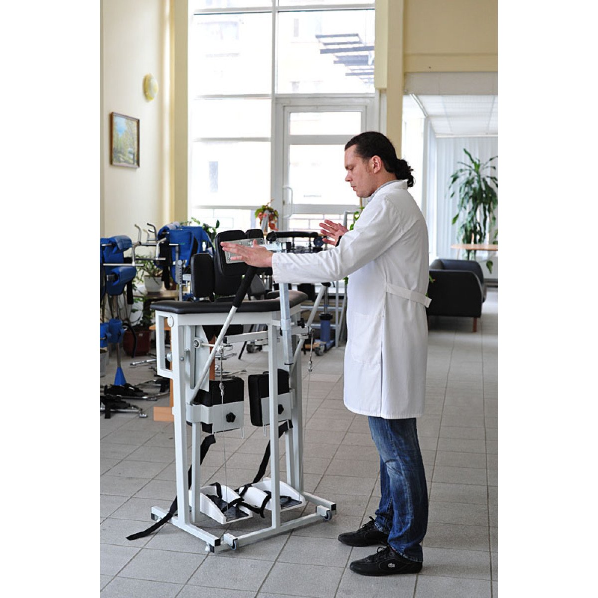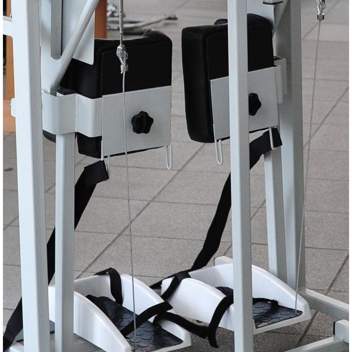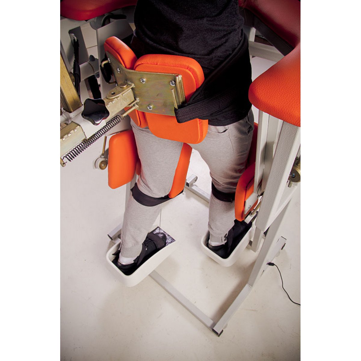 Для пациентов с серьёзными повреждениями шейного и верхнегрудного отделов спинного мозга предусмотрена дополнительная опора, которая позволяет безопасно удерживать их в вертикальном положении во время тренировок. Эта поддержка обеспечивает возможность выполнения всего комплекса восстановительных упражнений даже при наличии значительных ограничений в движении.