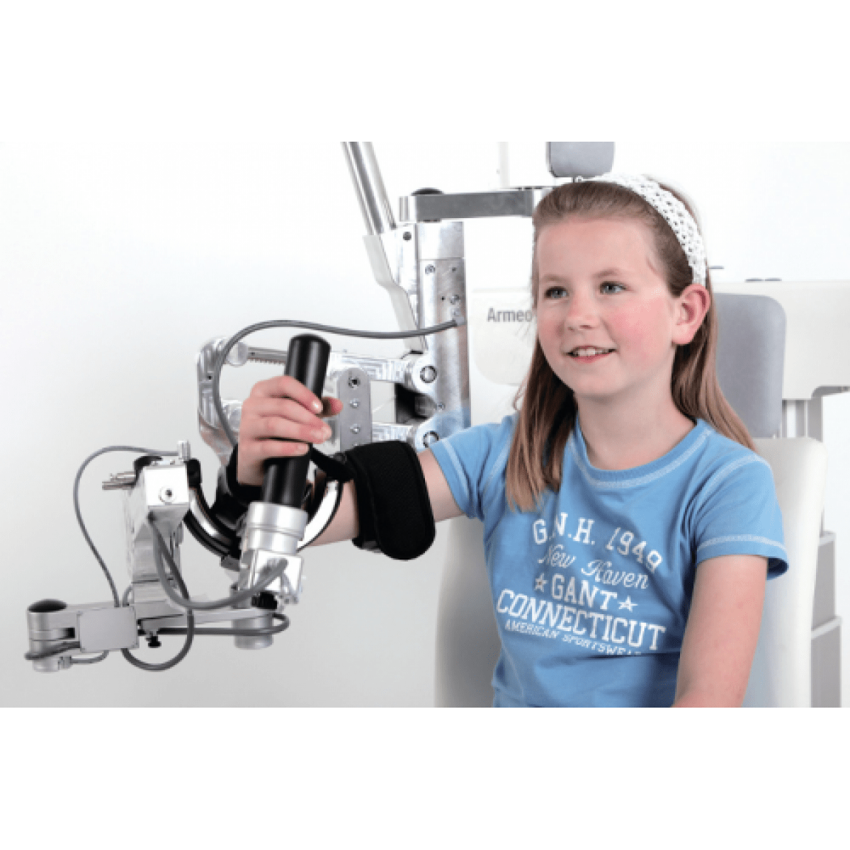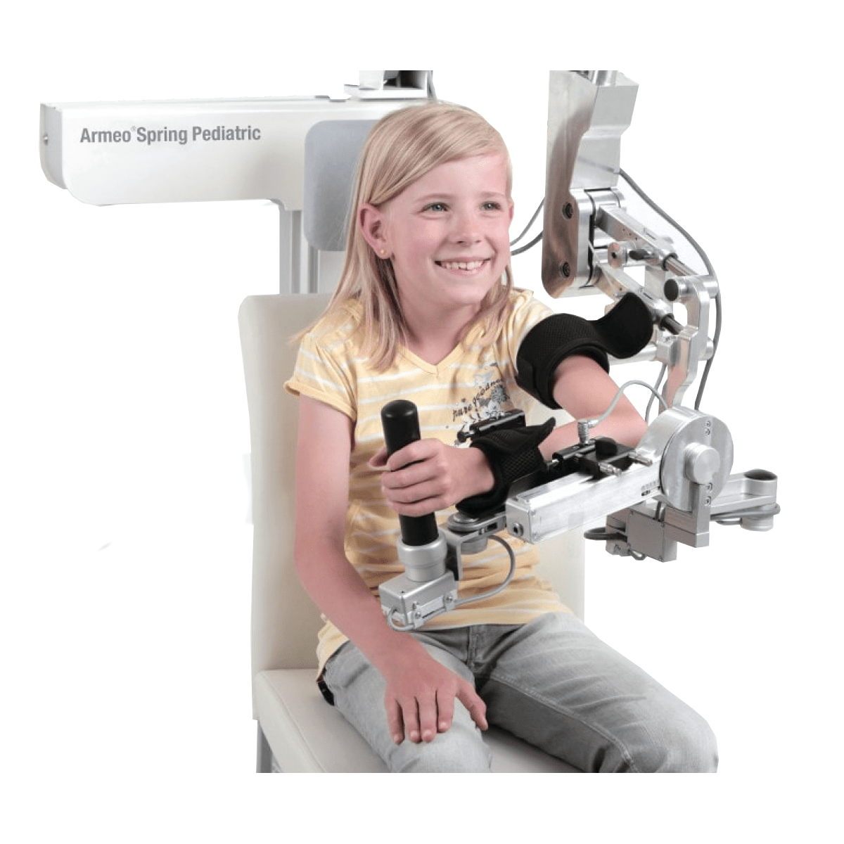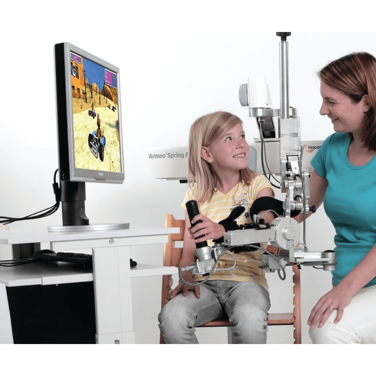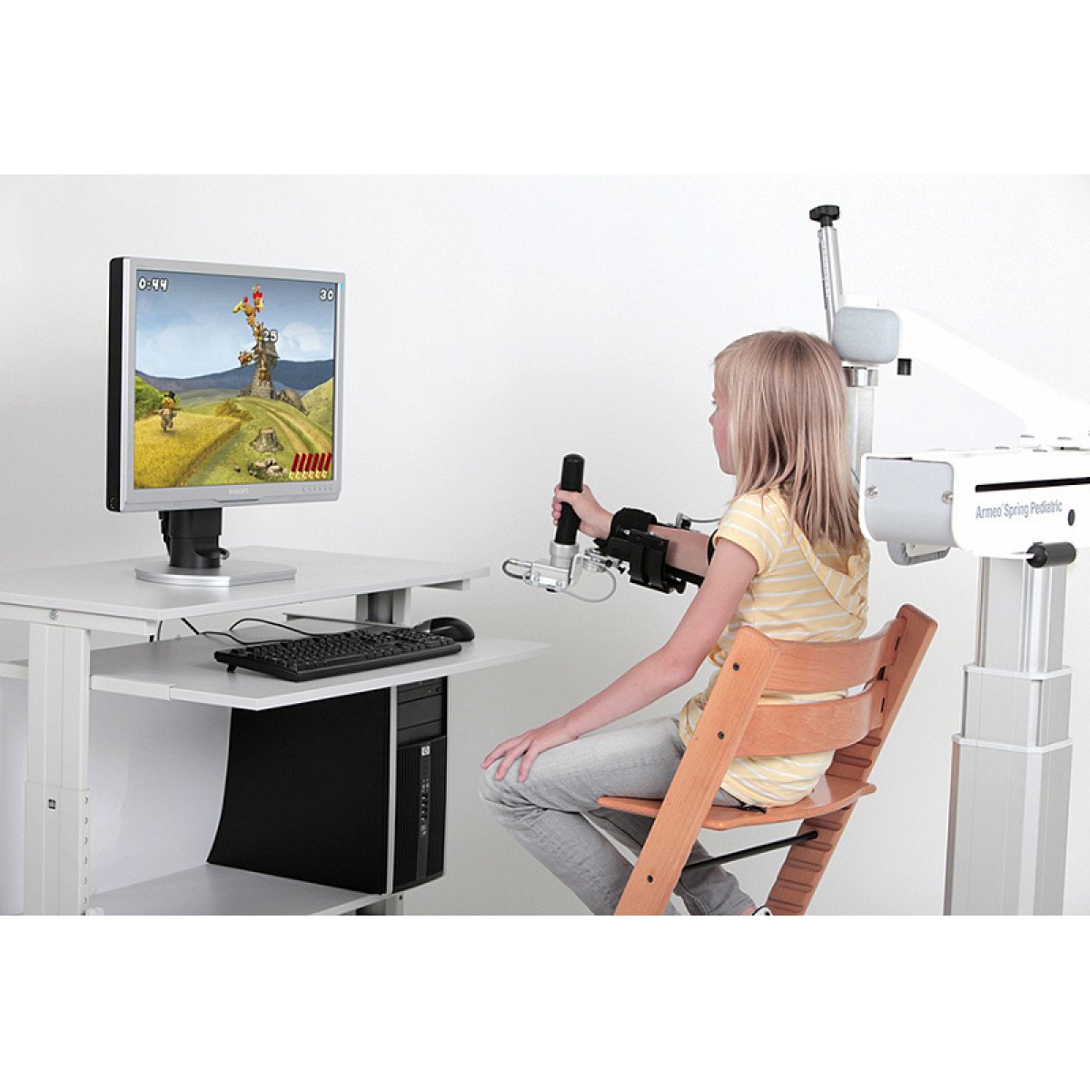 ArmeoSpring Pediatric (Армео Спринг Педиатрик) позволяет развивать и усиливать локомоторную и хватательную функции у детей с двигательными нарушениями. Комплекс ArmeoSpring Pediatric специально разработан и адаптирован для детей с двигательным дефицитом верхних конечностей рук и кистей в связи с неврологическими заболеваниями и травмами. ArmeoSpring Pediatric является эффективным инструментом для улучшения качества терапии с помощью применения интенсивных и функциональных двигательных упражнений, которые включают в себя мотивирующие задания и игры. Такой подход обеспечивает основу для успешной реабилитации.