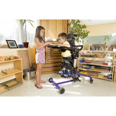 Вертикализатор Bantam Extra Small представляет собой многофункциональный тренажёр, который может использоваться в различных положениях: от сидячего до наклонного. Bantam также может служить школьной партой, что делает его особенно полезным в образовательных учреждениях. Для детей, которые испытывают трудности с пересаживанием, предусмотрена возможность перемещения в горизонтальном положении. Это позволяет ребёнку привыкнуть к вертикальному положению, начиная с сидячей позиции.