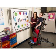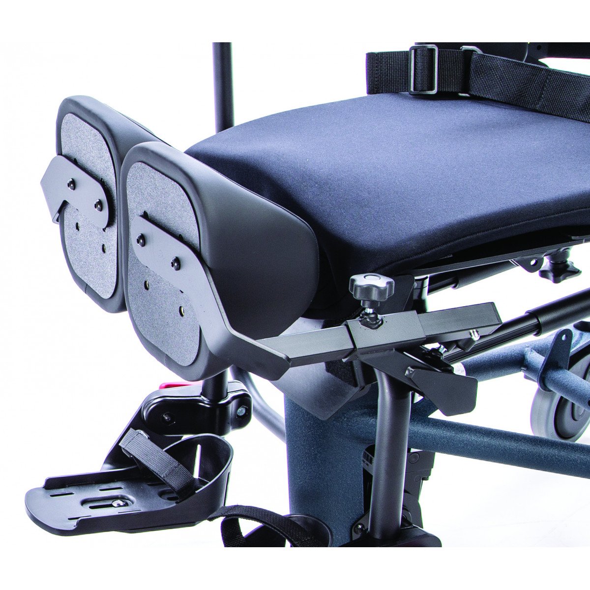 Bantam Medium позволяет ребёнку плавно переходить из сидячего положения в вертикальное или наклонное, в том числе лёжа — это удобно для детей, которым трудно пересаживаться. Подходит для повседневного использования, например, как партa в школе. Конструкция легко настраивается под степень поддержки: можно добавить наколенники, боковые опоры и ремни, чтобы зафиксировать таз и тело. Это снижает нагрузку при смене позиций и делает тренировки безопасными даже при сложных диагнозах.