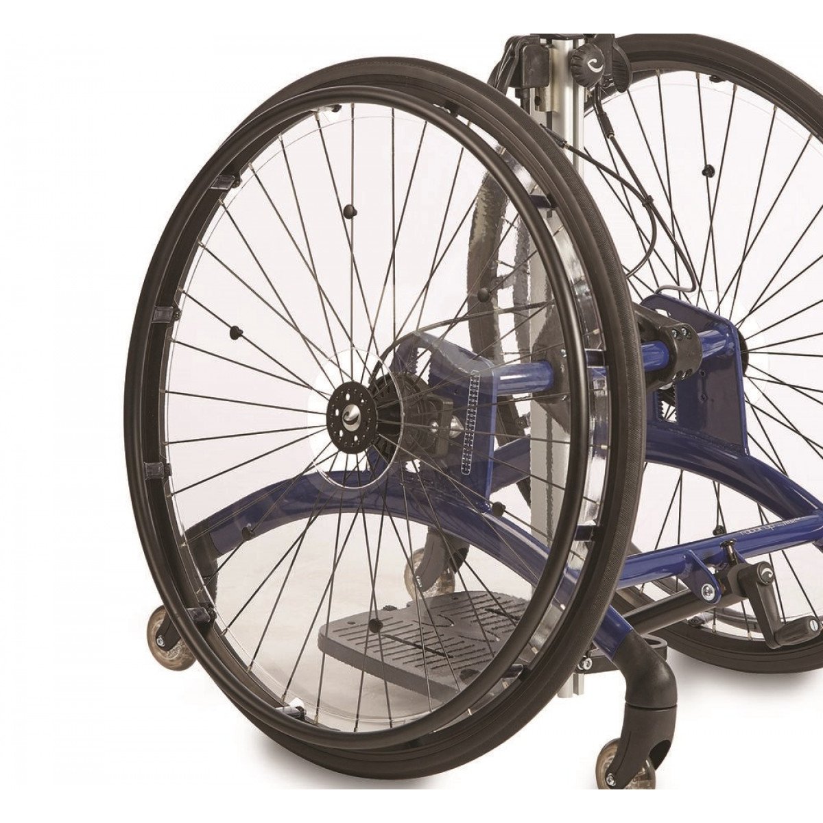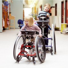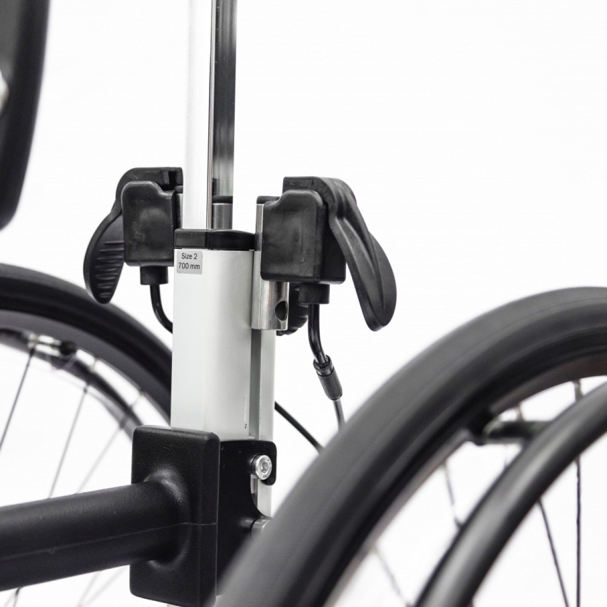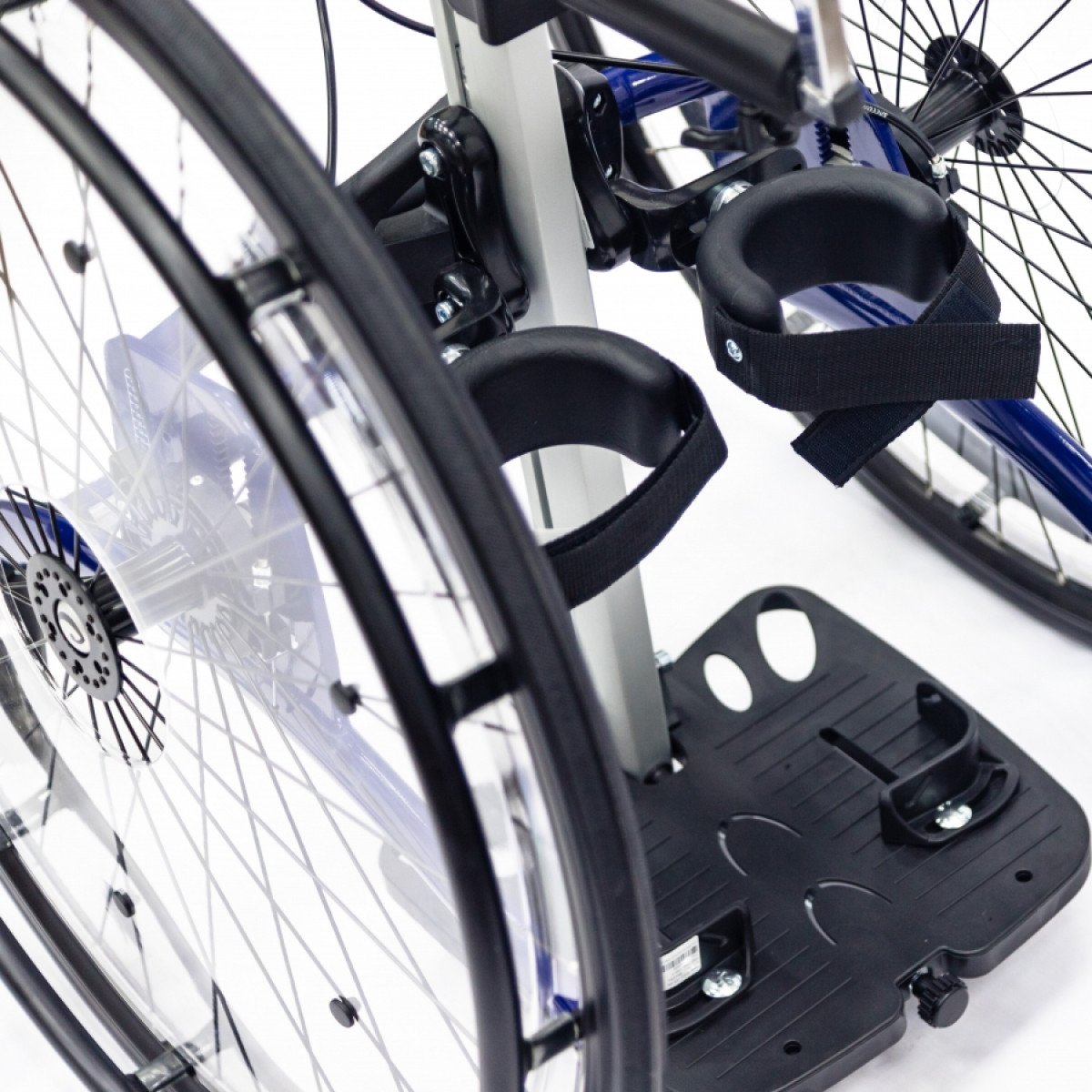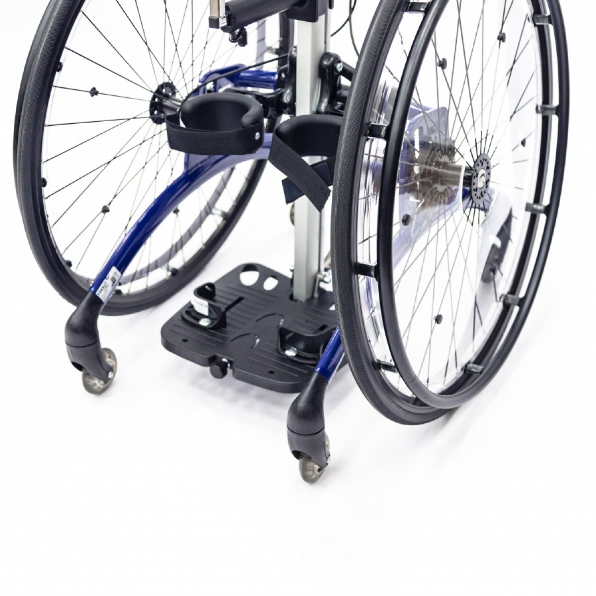 Низкое расположение подножки является важным аспектом, так как оно значительно облегчает процесс размещения ребёнка в вертикализаторе. R82 Rabbit оснащён колёсами большого диаметра, которые обеспечивают отличную манёвренность. Вся конструкция вертикализатора выполнена из прочных и износоустойчивых материалов, таких как алюминий, стекловолоконный нейлон и полиуретан. Эти материалы не только лёгкие, но и устойчивые к повреждениям. Кроме того, они без особых усилий поддаются санитарной обработке, что важно для поддержания гигиеничности и безопасности использования.
