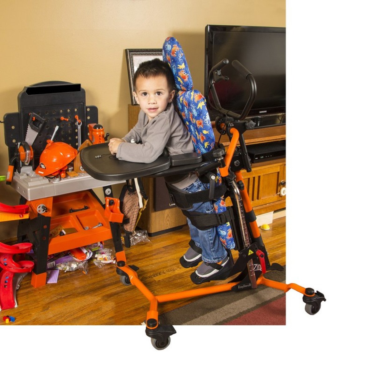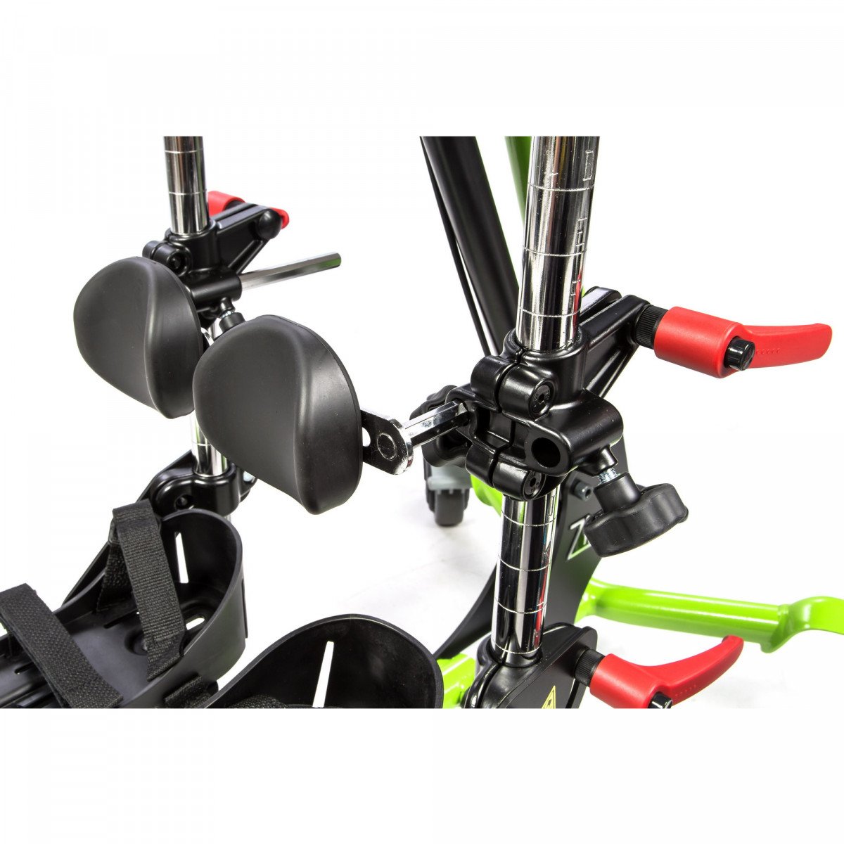Zing MPS TT выделяется тем, что оснащена более длинной и крупной подушкой для поддержки туловища и предлагает возможность использования мягких ремней. При необходимости можно добавить дополнительные элементы поддержки, подобные тем, что есть в модели Zing MPS, обеспечивая индивидуальную адаптацию под более сложные потребности ребёнка. В наличии имеется 75 различных компонентов для настройки вертикализатора.