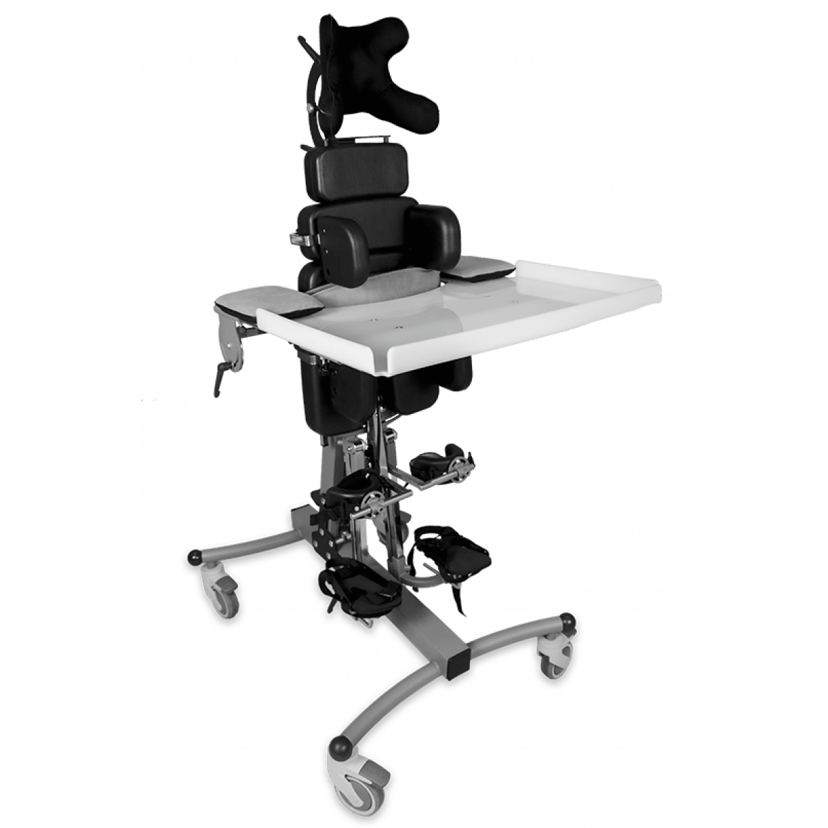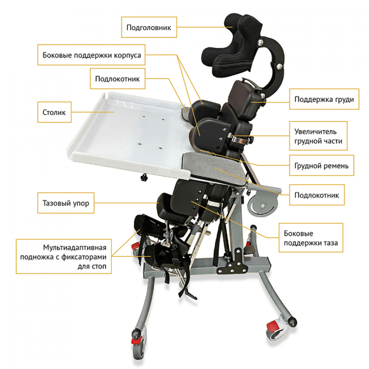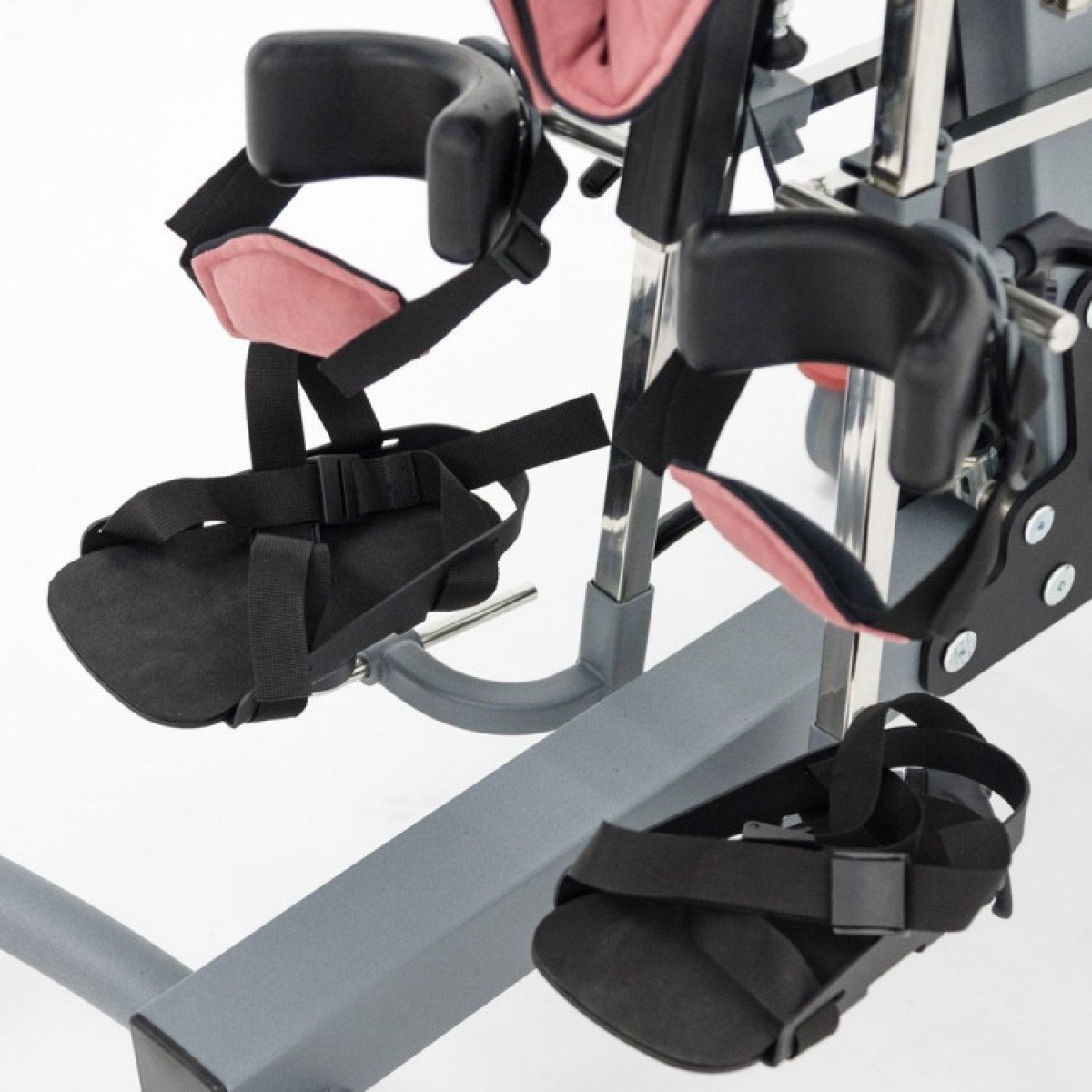 Дополнительно опора оборудована механизмом изменения угла в коленном суставе, который позволяет разместить ребенка даже при наличии контрактур в колене. Платформа для стоп крепится на специальной шарообразной основе, что предоставляет возможность настроить её в соответствии с особенностями сгибания и разгибания, а также пронации и супинации стопы.
