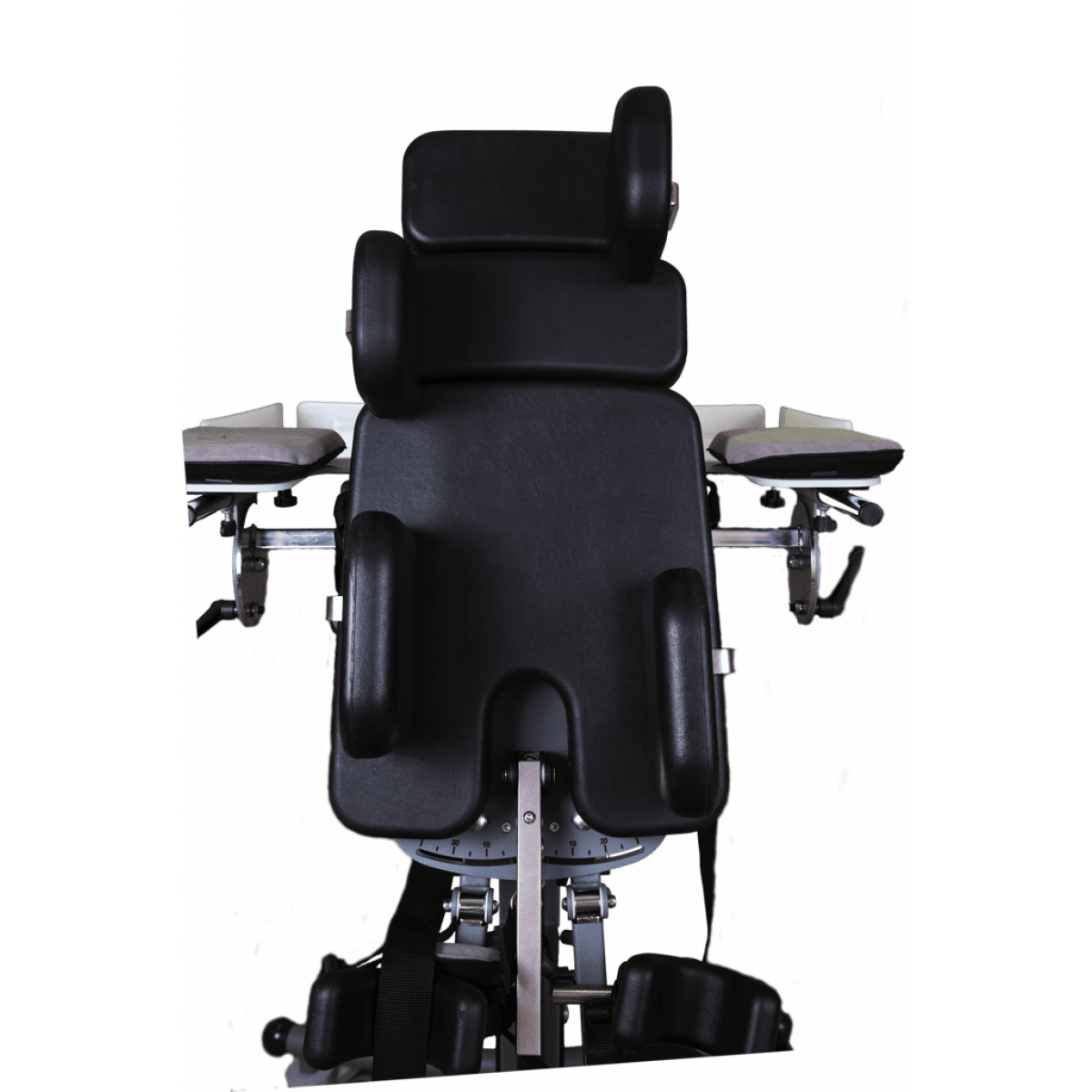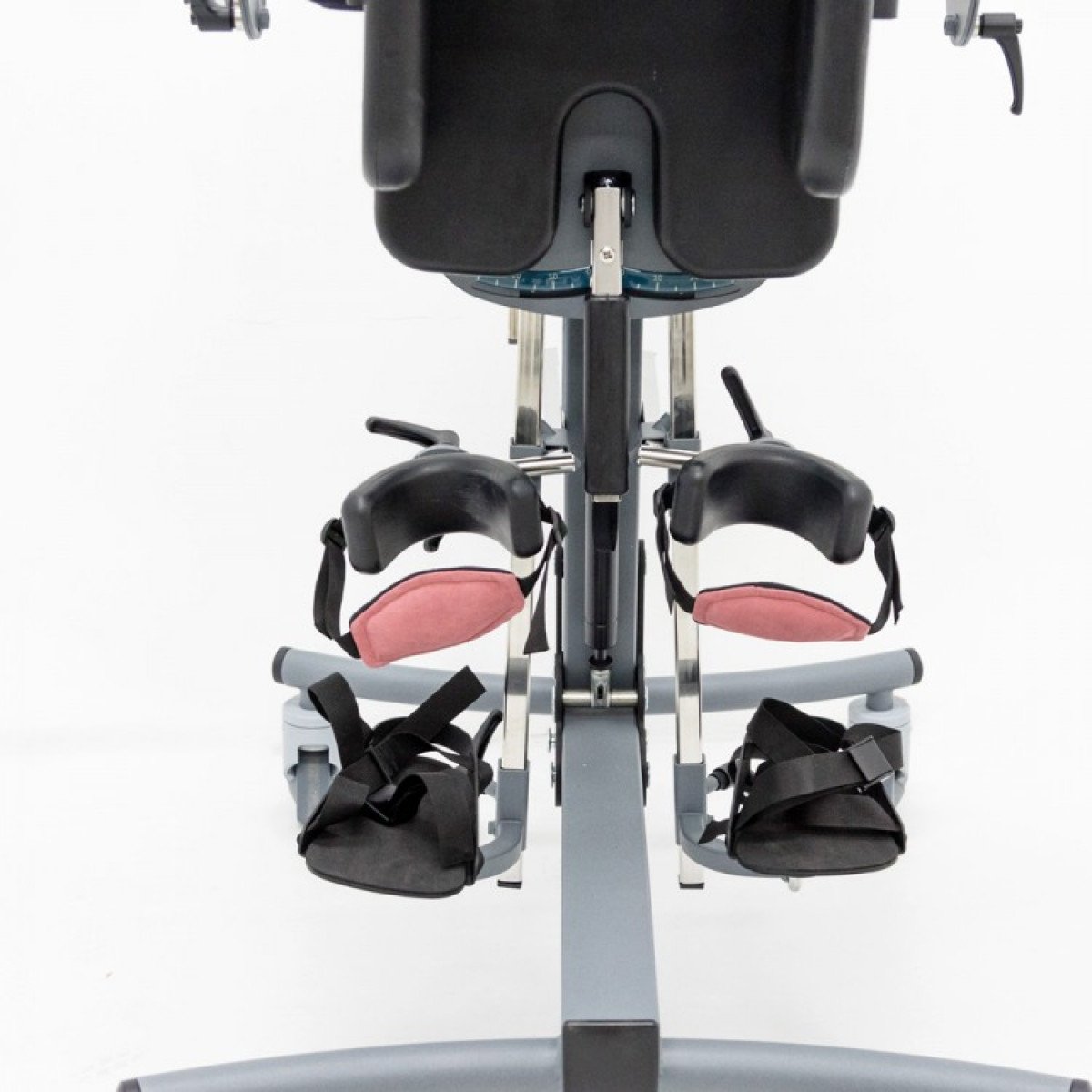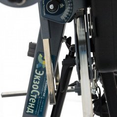 Вертикализатор позволяет точно регулировать угол отведения бедра для каждой ноги в диапазоне от 0° до 30°. Также стоит отметить, что угол вертикализации может корректироваться плавно — от 90° до -15°. Это позволяет полностью контролировать положение тела ребёнка и избегать излишнего напряжения или дискомфорта во время вертикализации. Для повышения точности и безопасности процедуры вертикализации Экзостенд оснащен шкалами, позволяющими точно изменять углы наклона и отведения ног. Эти шкалы упрощают настройку устройства и обеспечивают максимальную точность в положении ребёнка.