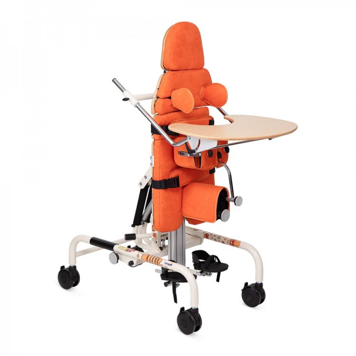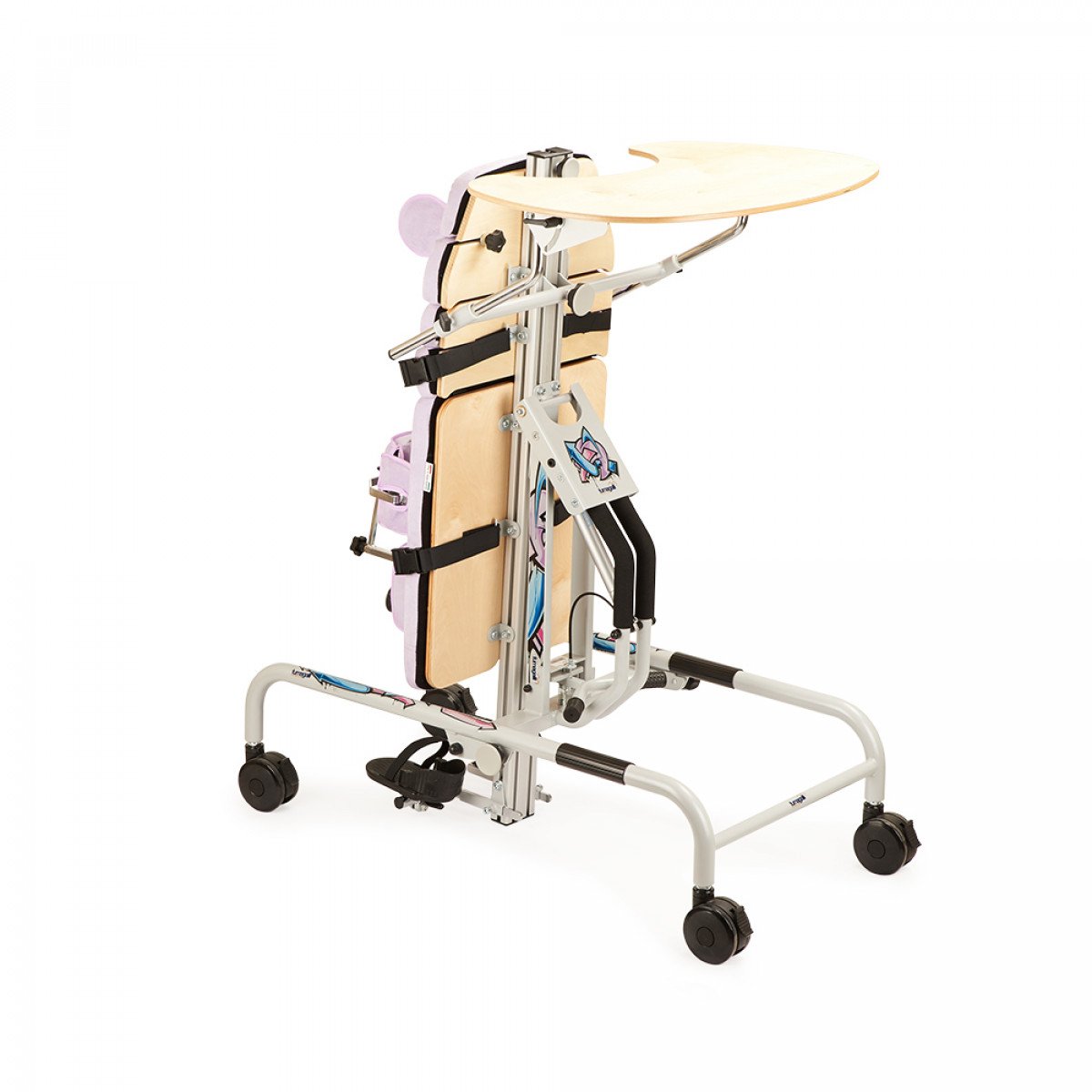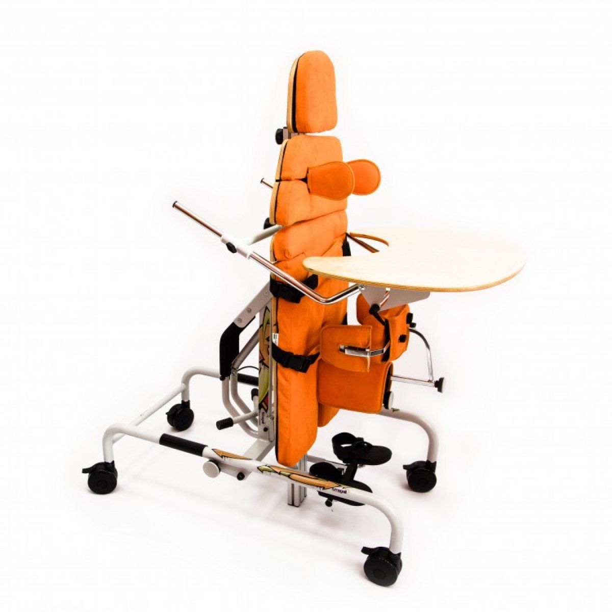 Прочная опорная рама Shifu оснащена четырьмя вращающимися колёсами, благодаря которым перемещать вертикализатор теперь легко и просто. Надежно зафиксировать его на месте поможет педальный тормоз. Платформу, которая поддерживает тело, можно удлинять с помощью специальной секции. Опорная рама и автономный подголовник имеют возможность плавной регулировки по высоте. Мягкая обивка приятная на ощупь, легко моется и не вызывает аллергии. Позиционная секция для ног оснащена регулировкой по высоте и регулирует сгибание/разгибание стоп и внутренний/внешний разворот стопы. Регулируемый абдуктор предотвратит скрещивание ног, а боковые поддержки с регулировкой по высоте и глубине удержат таз и туловище в нужном положении.