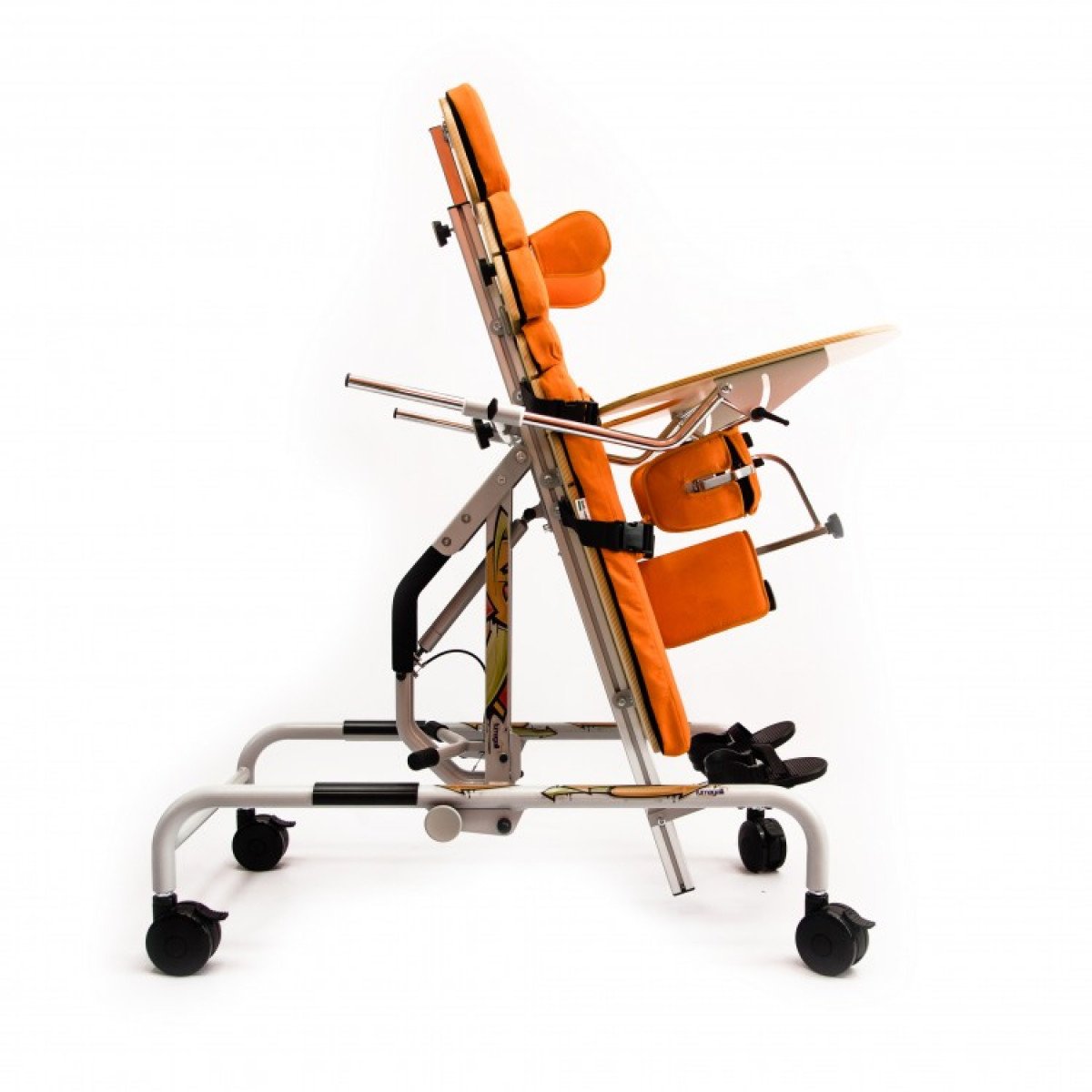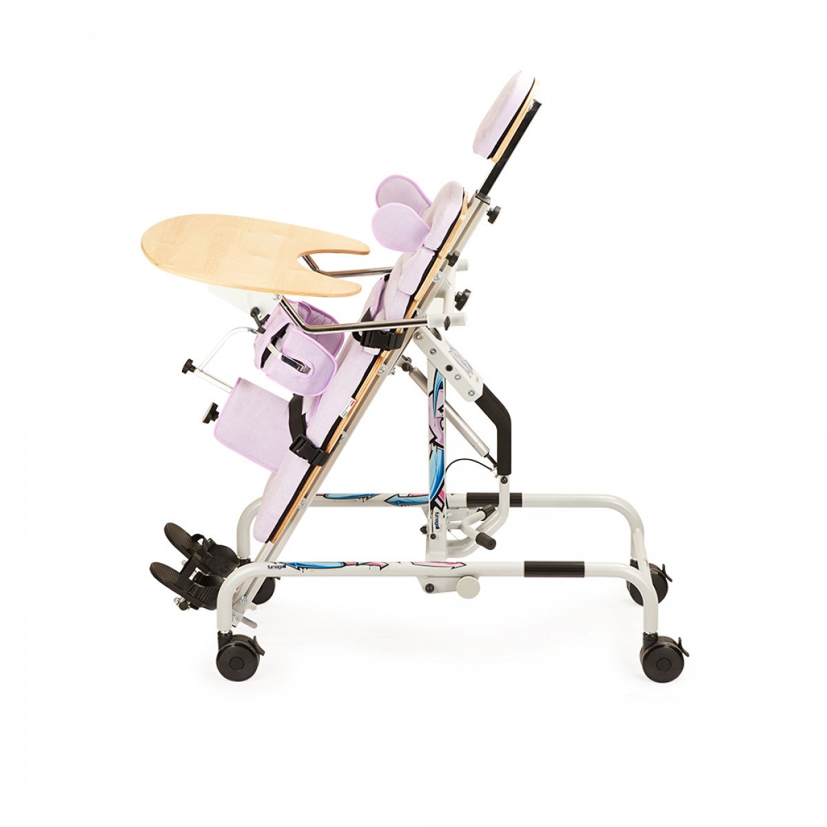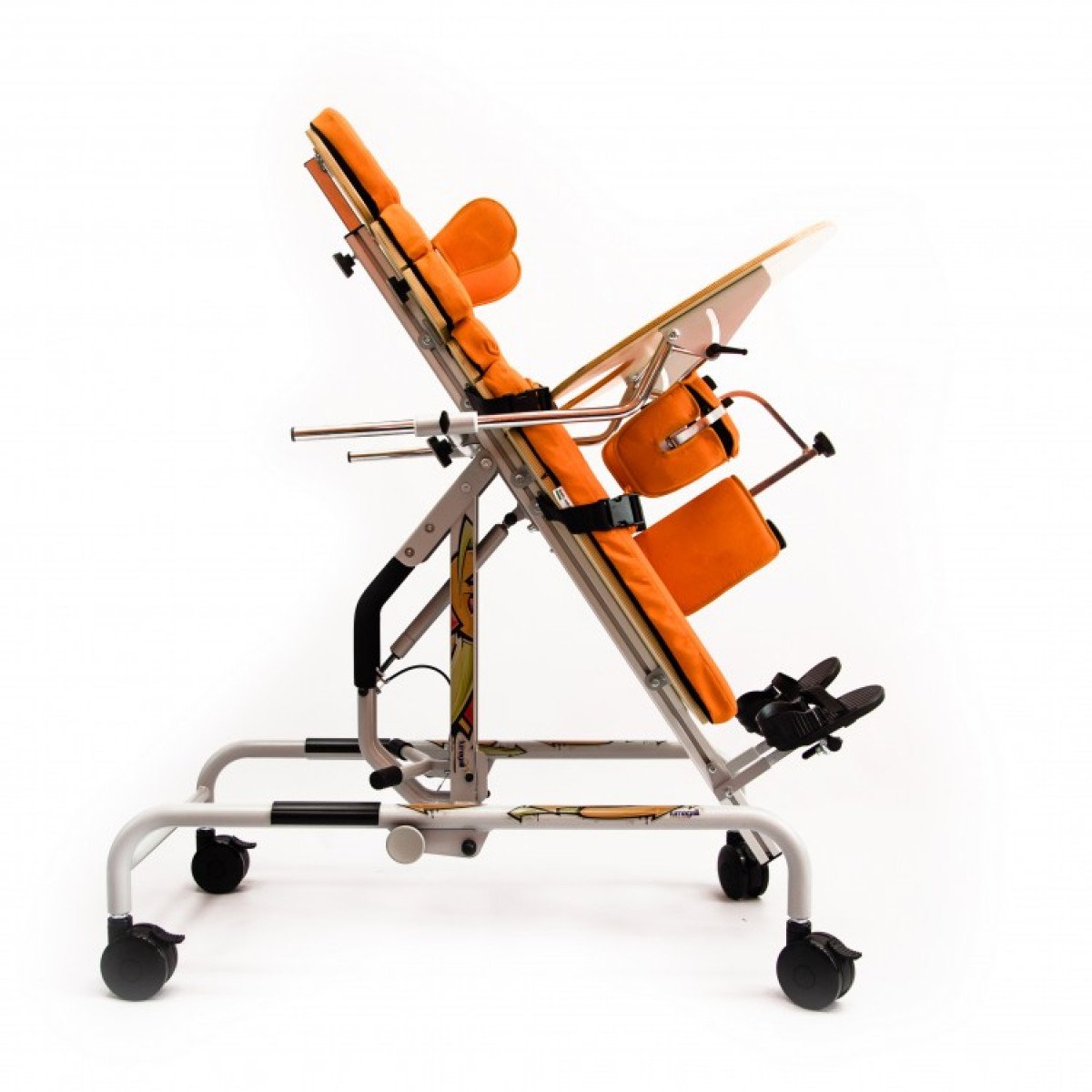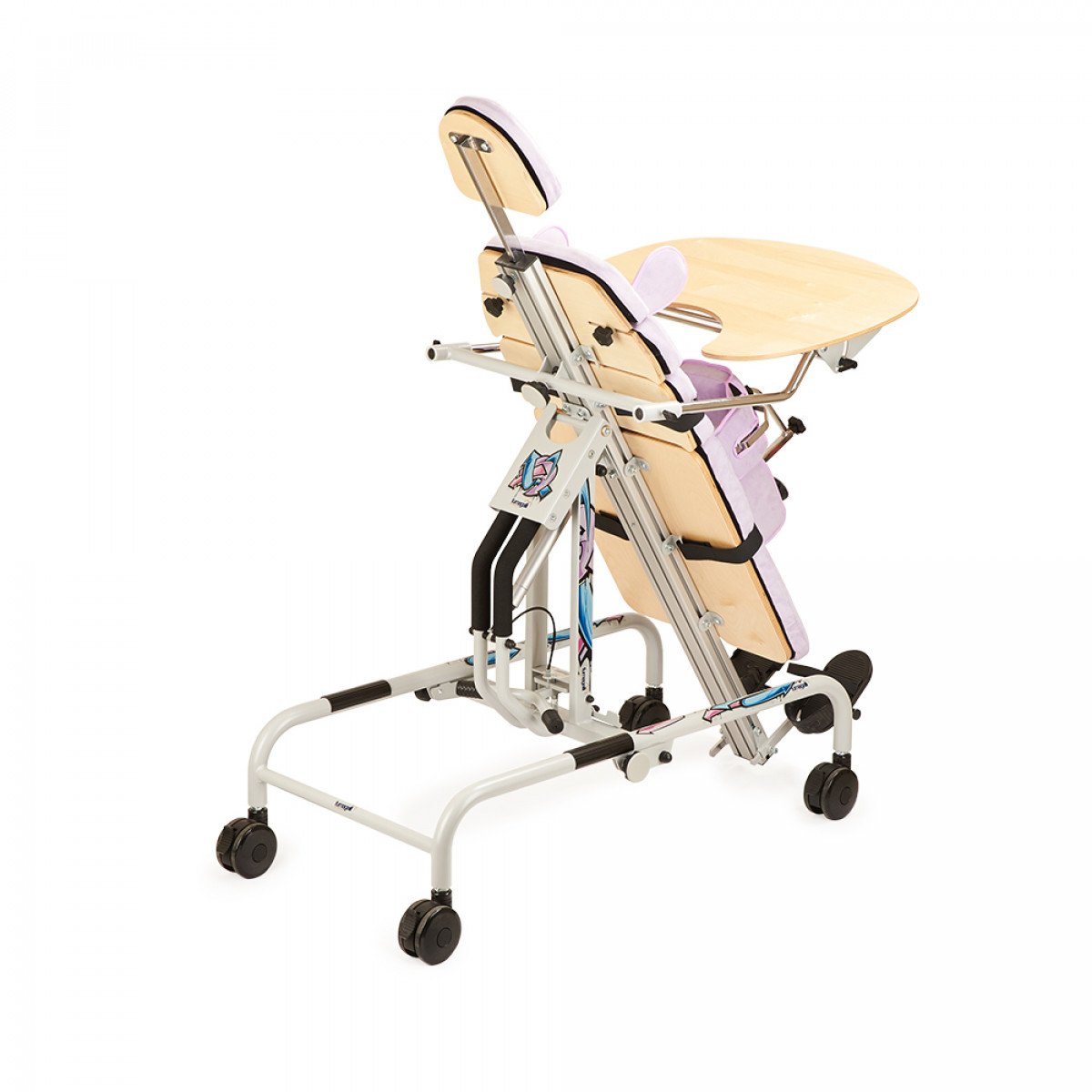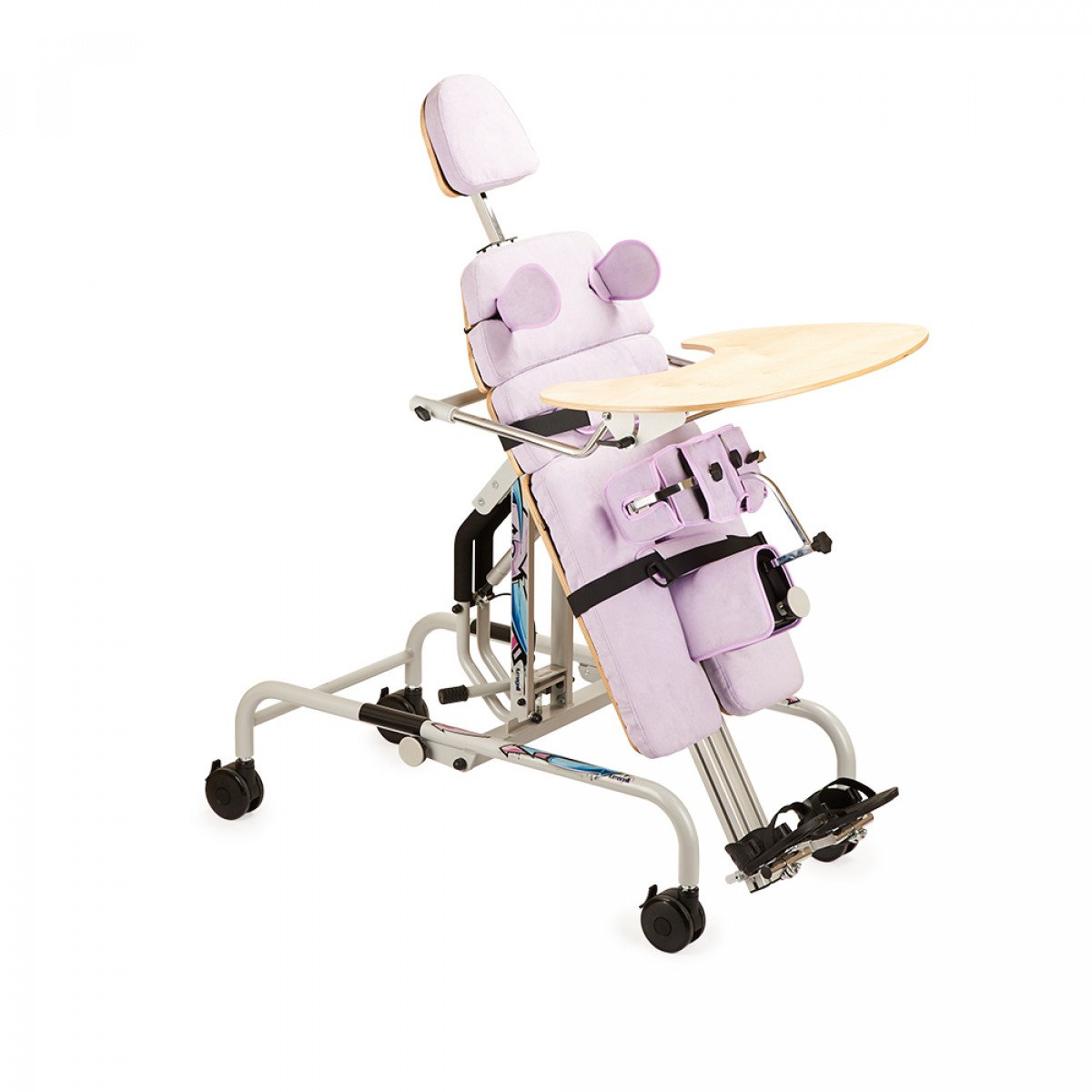 Рама занимает минимум места даже во время использования, что повышает удобство проведения реабилитационных упражнений и обеспечивает рациональное хранение. Надежная фиксация обеспечивается благодаря наличию фиксирующих ремней для туловища, таза, коленей с мягкой комфортной обивкой, которые не доставляют дискомфорта. Уникальная многоуровневая регулировка наклона из полностью горизонтального положения в вертикальное.