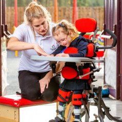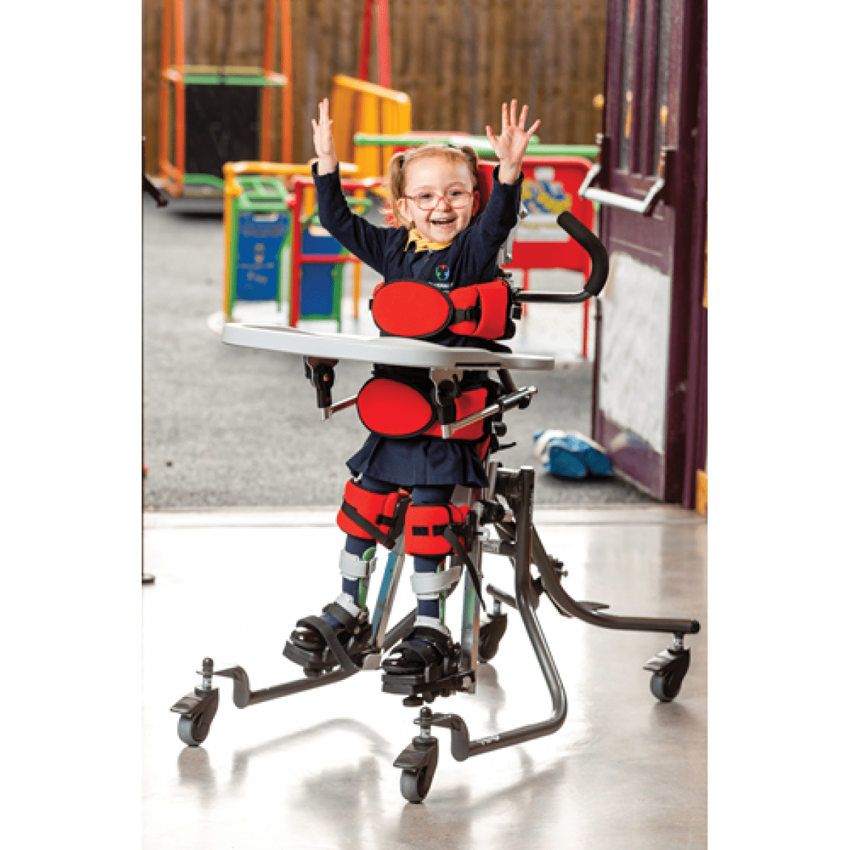 LECKEY Squiggles Stand (Лекей Сквигглз Стэнд) используется как передне- и заднеопорный вертикализатор. Он с ранних лет создаёт условия для социального и психологического развития ребёнка. При его использовании Squiggles Stand дети в возрасте от 1 года до 5 лет (рассчитан на рост от 75 см до 111 см) могут участвовать в повседневной жизни, находясь в вертикальном положении.
