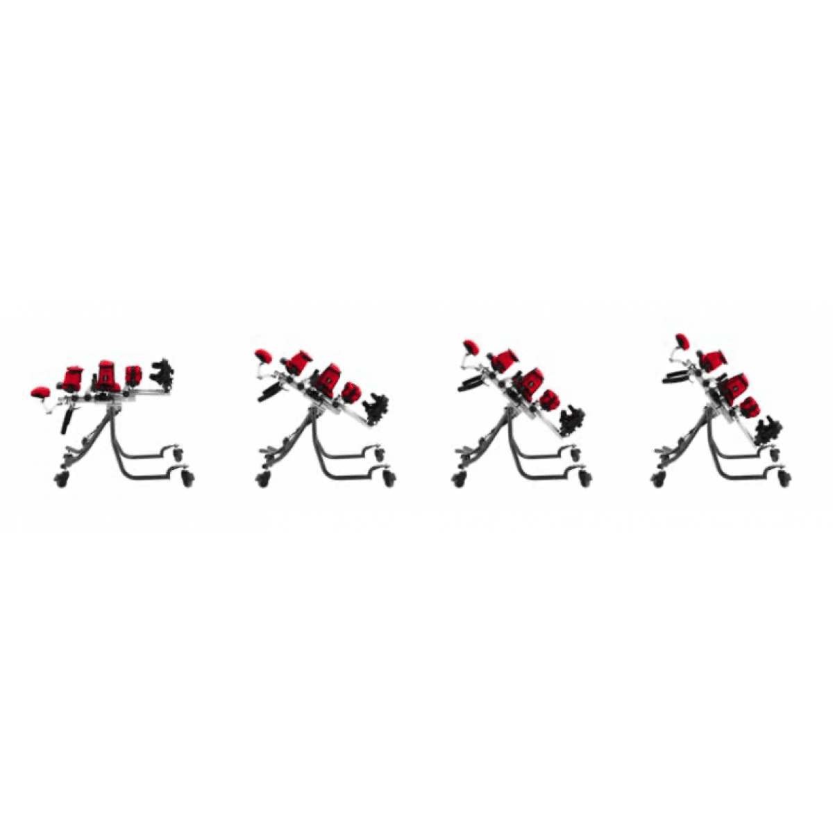Боковые поддержки Squiggles Stand регулируются по высоте, глубине, ширине и углу наклона без применения инструмента. Легко меняется положение ребёнка лицом или спиной к вертикализатору (опора спереди или сзади) без использования дополнительных аксессуаров (убираем подголовник, разворачиваем сандалии). Выбор шасси зависит от уровня развития двигательных навыков. Отличительной особенностью является наличие функции разведения ног.