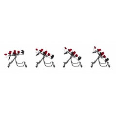 - Комплект 4 (цвет красный): шасси на колёсах, подголовник с боковыми поддержками, стол, опоры для стоп, сандалии маленькие, фиксаторы грудного отдела, туловища, коленей
