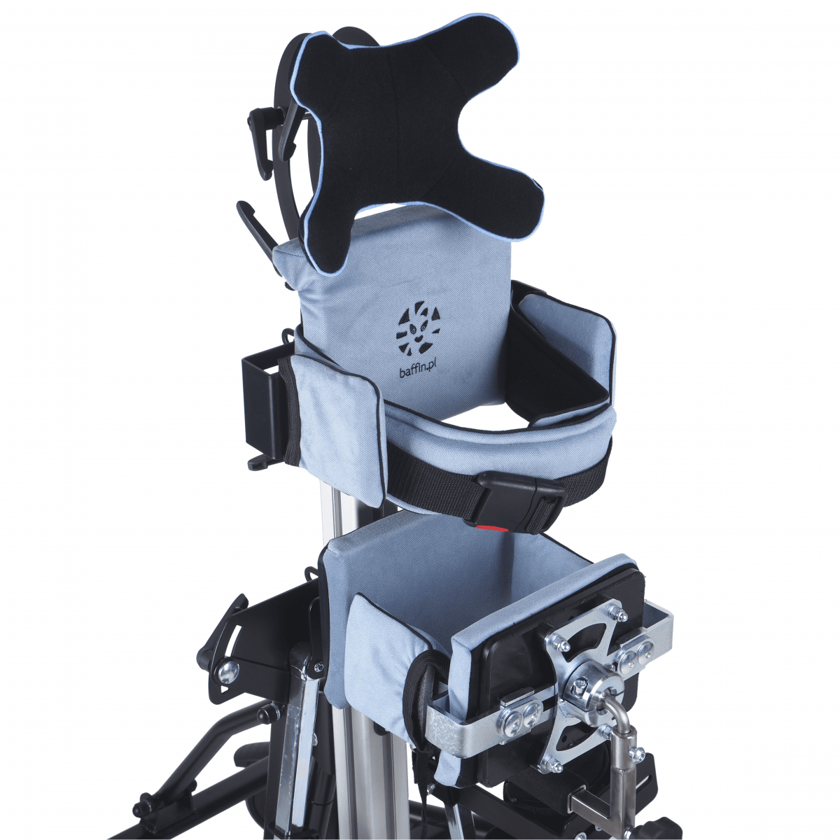 Голову поддерживает контурный подголовник, который крепко удерживает голову. Подголовник изготовлен из гибкого материала, что позволяет ему подстраиваться под форму головы ребёнка. Использование подголовника возможно как при передней, так и при задней вертикализации.