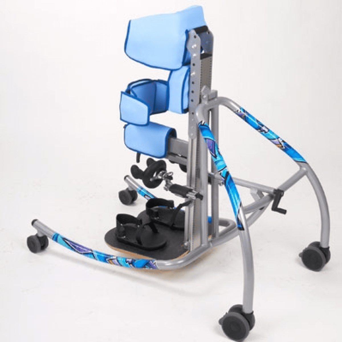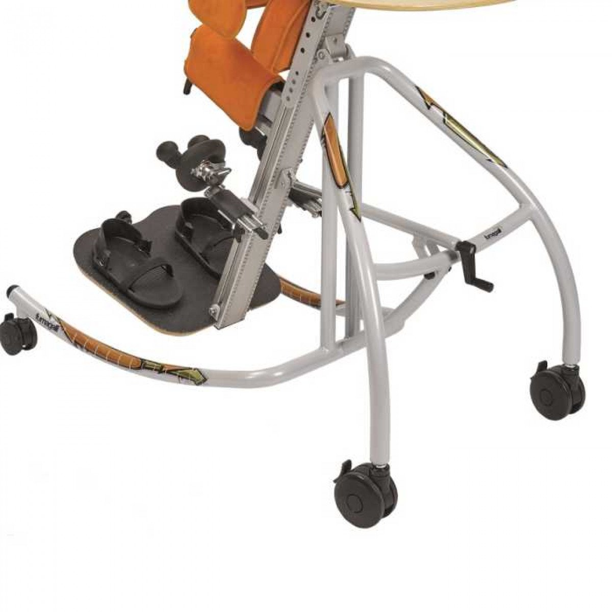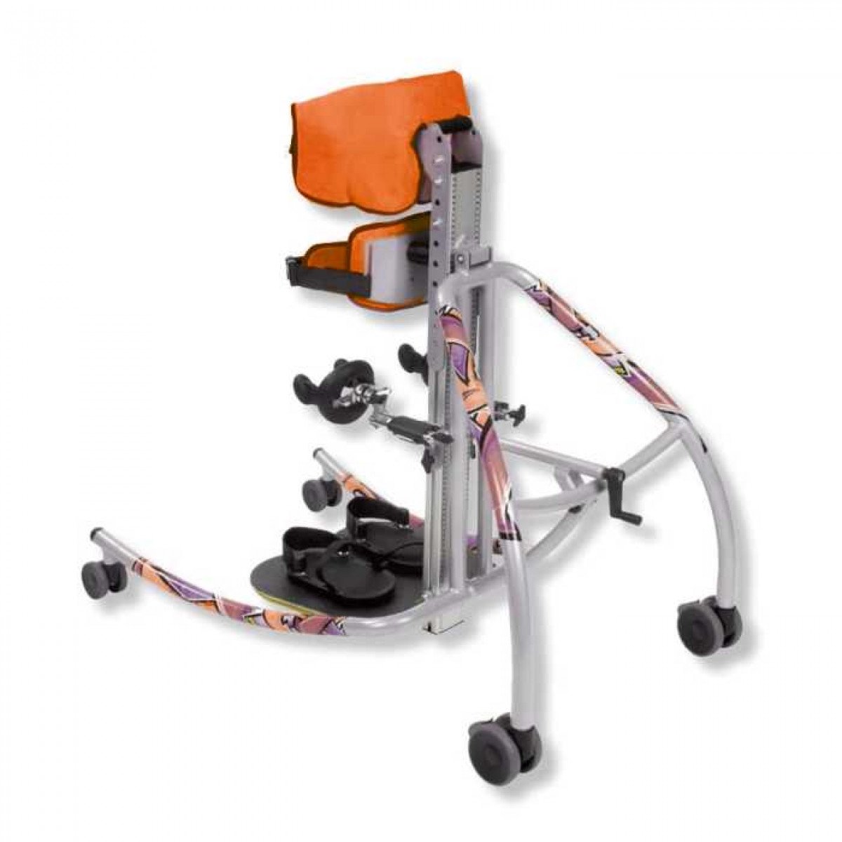 Robin состоит из прочной и лёгкой рамы, а также опорных элементов, которые образуют своего рода каркас. Этот каркас окружает ребёнка со всех сторон, обеспечивая надёжную поддержку и стабильность. Благодаря этому конструктивному решению, вертикализатор помогает ребёнку принять безопасное и комфортное положение, что крайне важно для его физического развития и реабилитации.