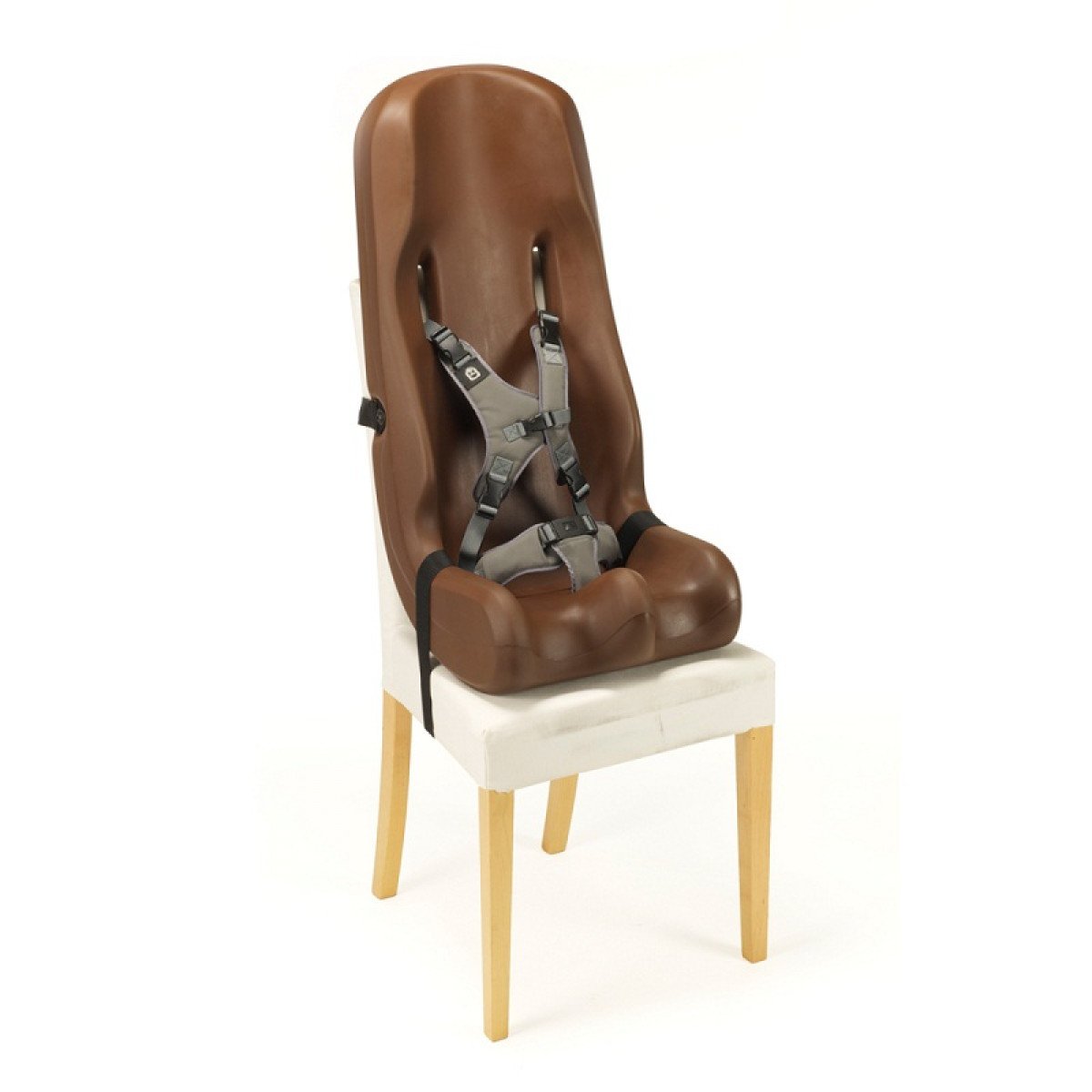 - Оснащён крепёжным ремнём (для крепления кресла к стулу или к коляске)