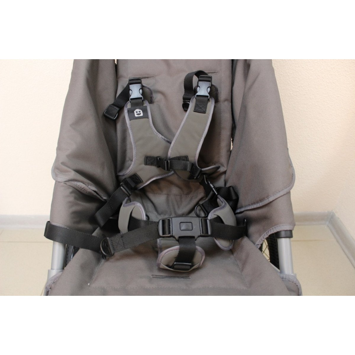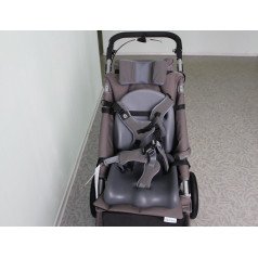 Коляска выполнена в стильном серо-шоколадном цвете. Особое внимание уделено элементам поддержки ребёнка: присутствует подголовник, который обеспечивает дополнительную фиксацию головы и шеи ребёнка, пятиточечный ремень безопасности, позволяющий надёжно удерживать ребёнка в сидячем положении, а также просторная подножка, которая подходит для детей разного роста. Наличие стандартного навеса защищает от солнечных лучей и дождя, создавая комфортные условия во время прогулки.