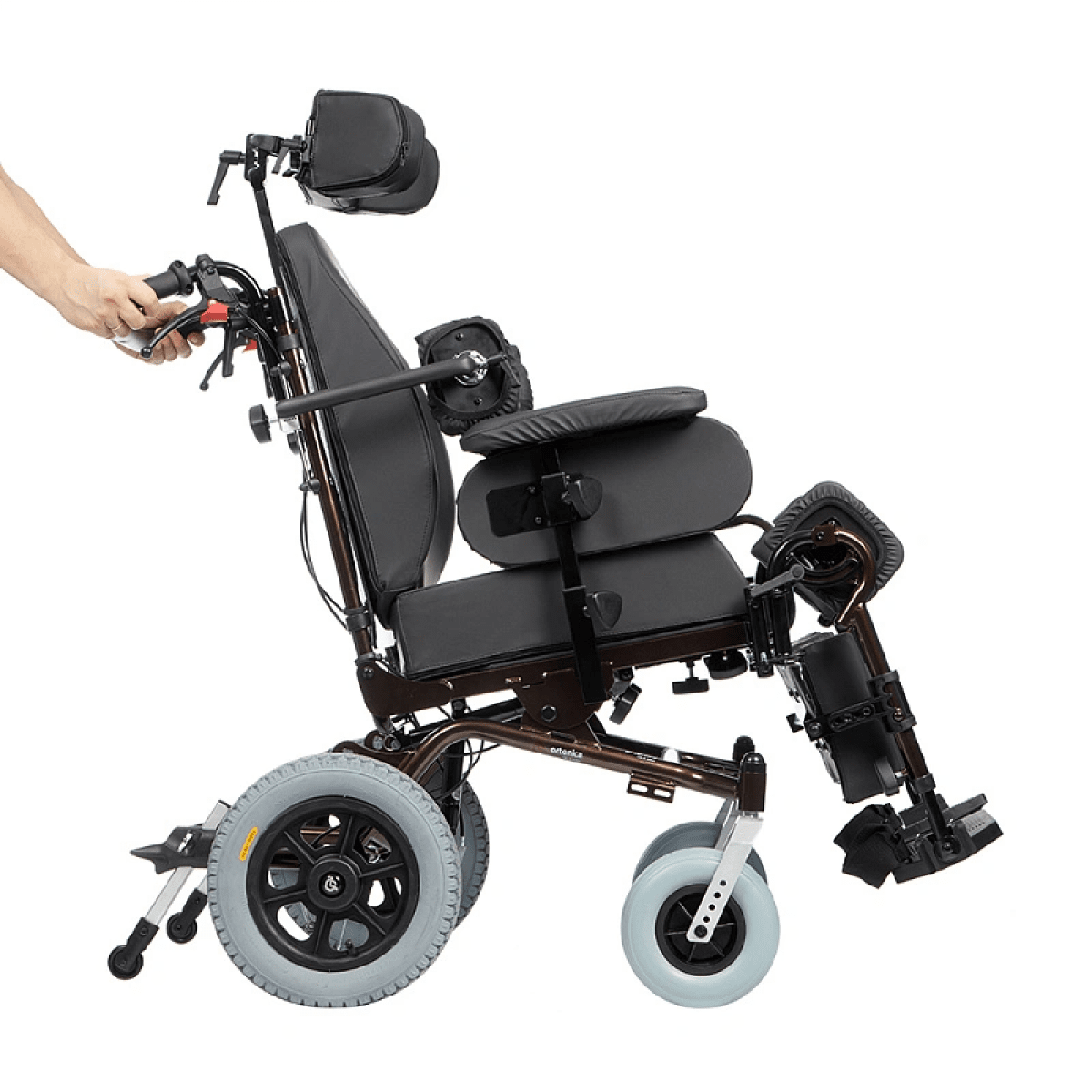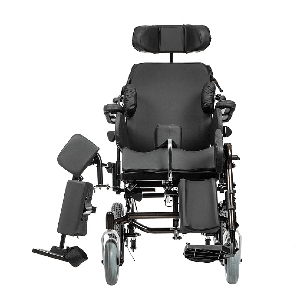 Подлокотники съёмные, регулируются по высоте и ширине, поэтому подъезд к обеденному столу не станет проблемой. Грязезащитные бортики также настраиваются по высоте. Раздельные откидные подножки меняют длину и угол наклона. В кресле отвечают съёмный регулируемый абдуктор, подголовник, настраиваемый в нескольких плоскостях, и боковые поддержки. Они мягкие, съёмные и регулируются по углу наклона. Для безопасного преодоления препятствий и бордюров предусмотрены антиопрокидыватели на колёсиках.