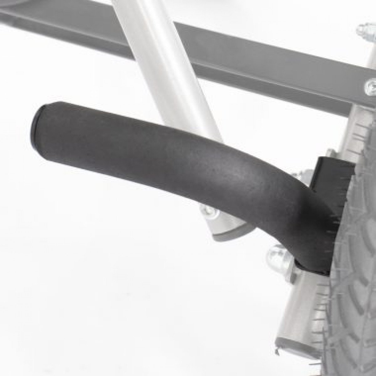 Также в коляске имеется мультиподножка FlipFlap, которая позволяет по отдельности регулировать каждую стопу. Можно фиксировать их в перекрестном положении или по периметру, а также регулировать отведение и приведение ног. Высота подножки тоже может варьироваться в широком диапазоне, что делает её универсальной и удобной. Для упрощения процесса вставания из кресла подножки легко отводятся в сторону.