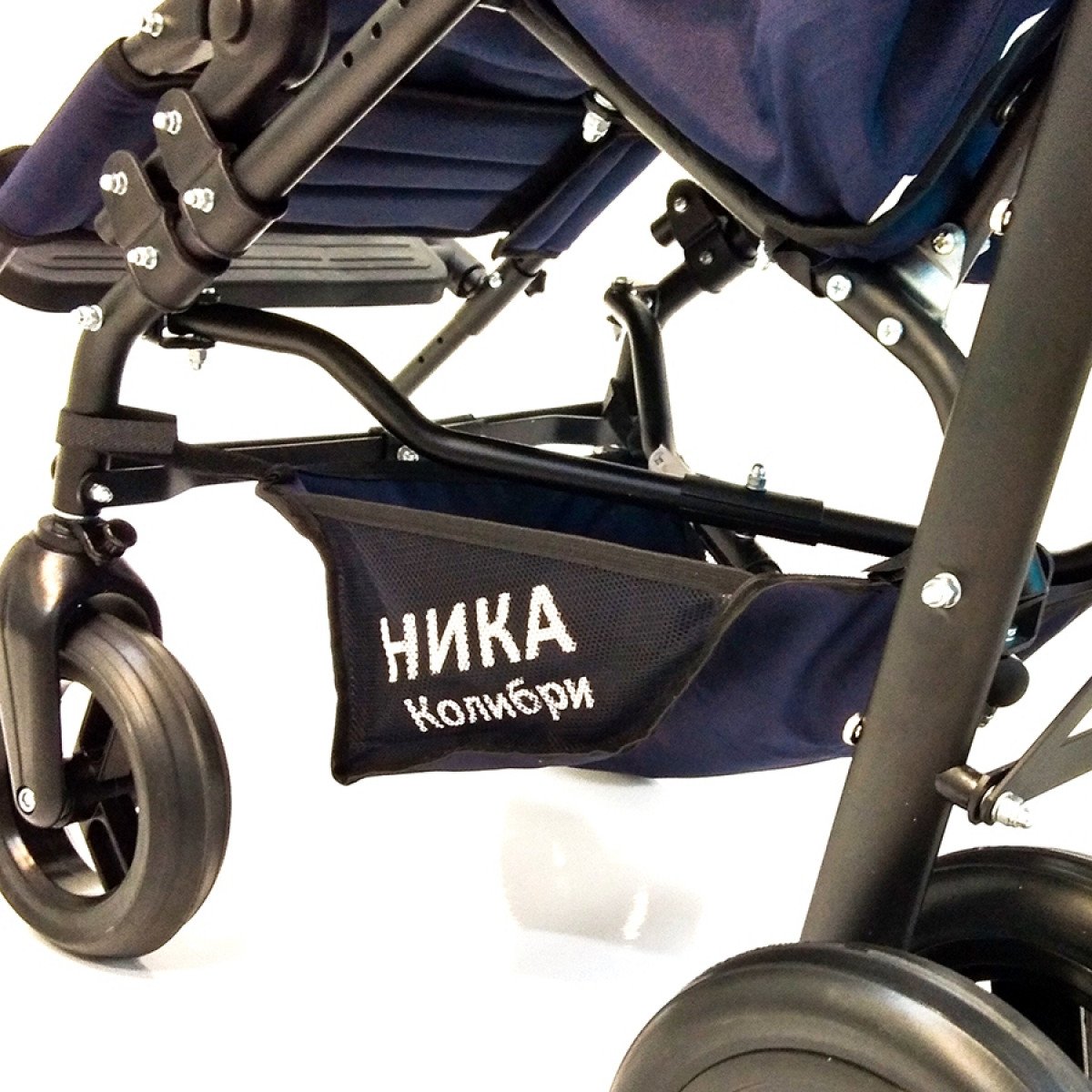 НИКА-05 оснащена быстросъёмными задними колёсами, что облегчает процесс хранения и транспортировки коляски. Широкие шины колёс обеспечивают повышенную устойчивость и отличную проходимость по различным поверхностям, включая тротуары, парки и неровные дорожки.
