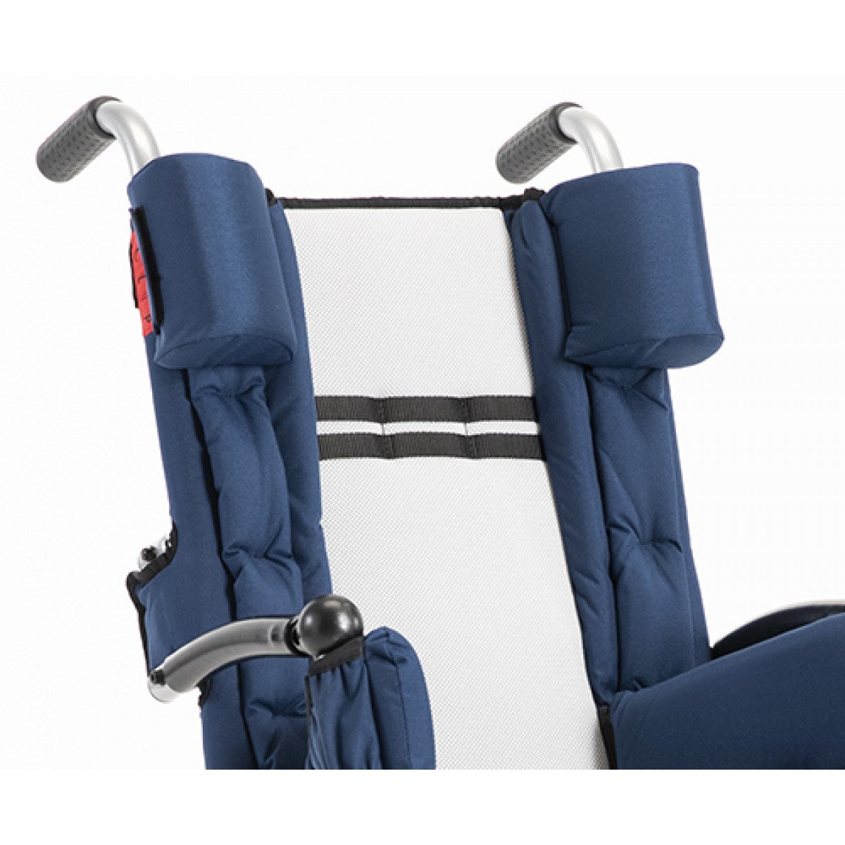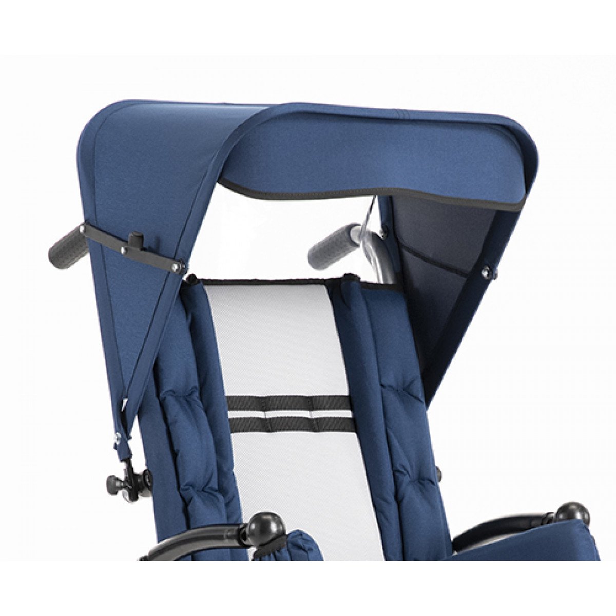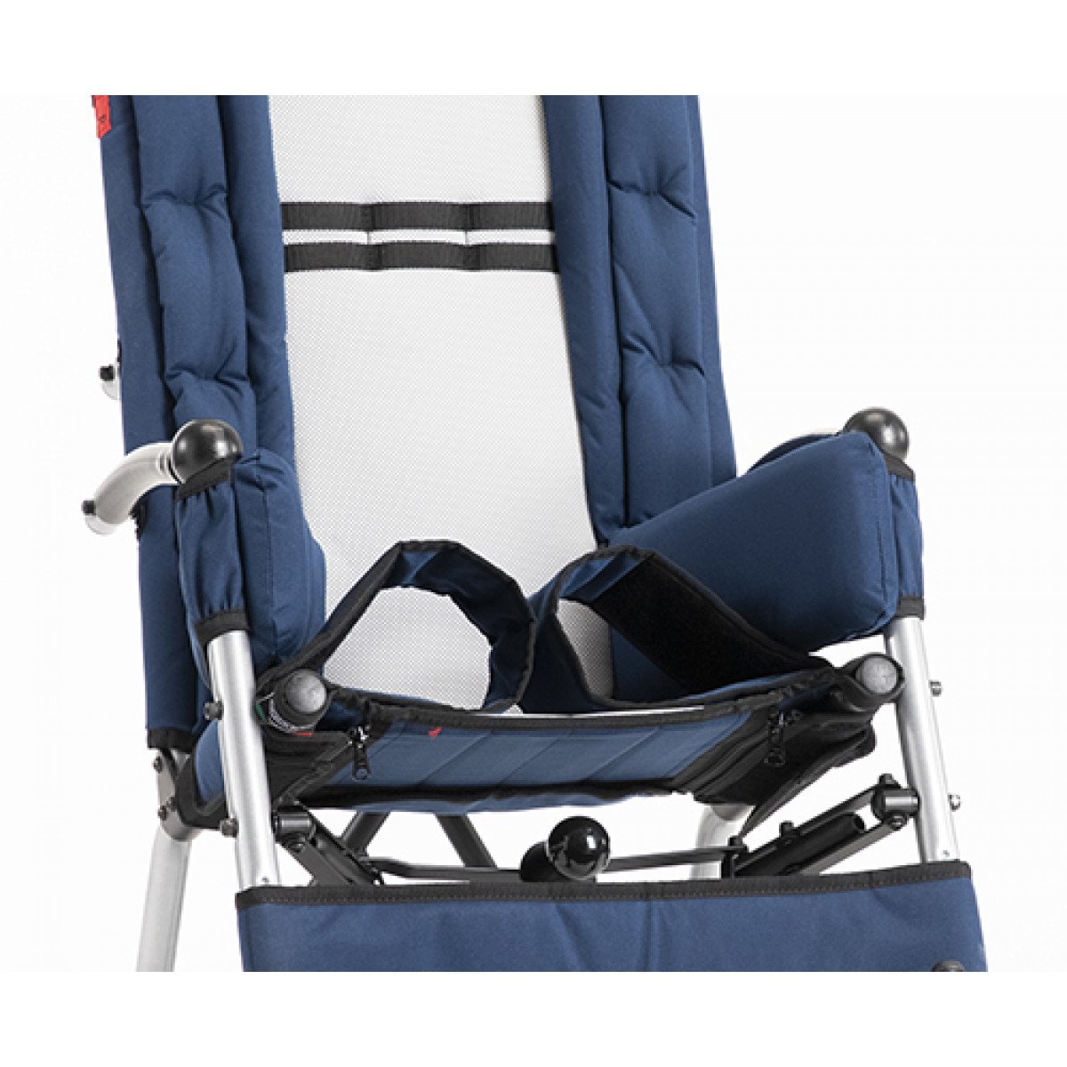 Коляска оснащена откидывающейся полужёсткой спинкой, которая имеет три положения, обеспечивая индивидуальный подход к комфорту пользователя. Родители могут легко изменять угол наклона спинки в зависимости от потребностей ребёнка. Подножка коляски также подлежит регулировке по высоте, что позволяет обеспечить оптимальное положение ног ребёнка.
