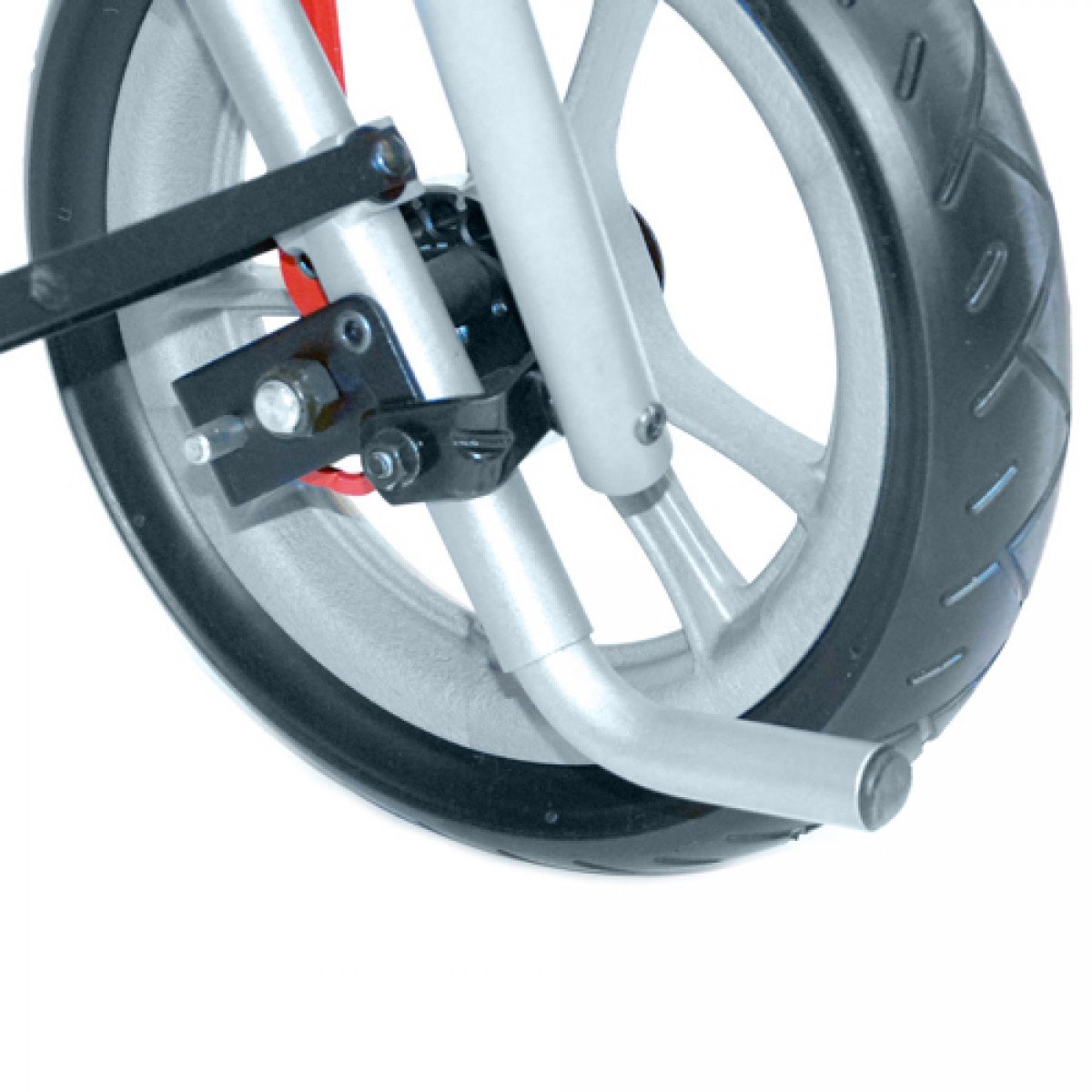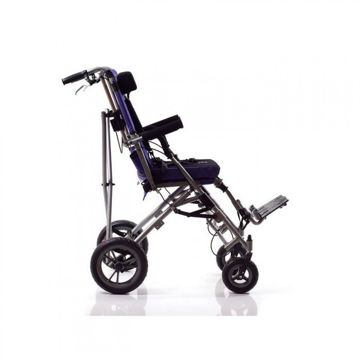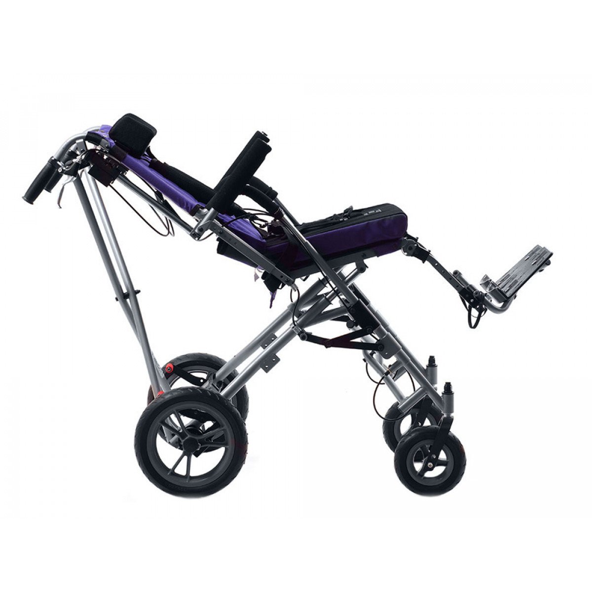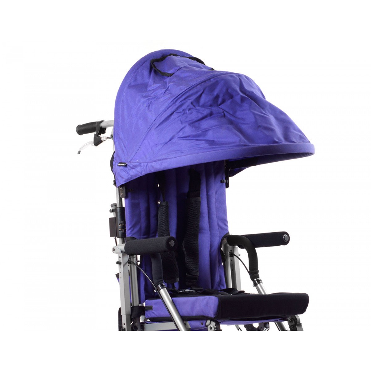 Передние колёса придают модели маневренности, а задние колеса с цельнолитыми шинами повышают проходимость. Коляска пригодна к передвижению с помощью сопровождающего лица как в помещении, так и на улице. А для комфорта во время прогулок в комплекте коляски предусмотрен капюшон, который может защитить ребёнка от солнца или небольших осадков.