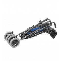 Коляска оборудована простым механизмом складывания по принципу «трости», что позволяет быстро и легко приводить её в компактное состояние. Это особенно удобно при необходимости транспортировки или хранения, так как она занимает минимум места. Небольшой вес коляски облегчает её переноску и управление.