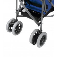 Свободно поворачивающиеся передние колёса обеспечивают отличную маневренность, что делает использование коляски комфортным, даже на неровных или сложных городских поверхностях. Блокировщики на колесах позволяют зафиксировать их в нужном положении, что обеспечивает дополнительную устойчивость.