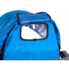 Коляска оборудована трёхточечным ремнём безопасности, который регулируется по глубине в паховой области. Съёмный капюшон защищает от солнечного света и дождя, при этом он оснащен прозрачным окошком, позволяющим родителям легко наблюдать за ребёнком.