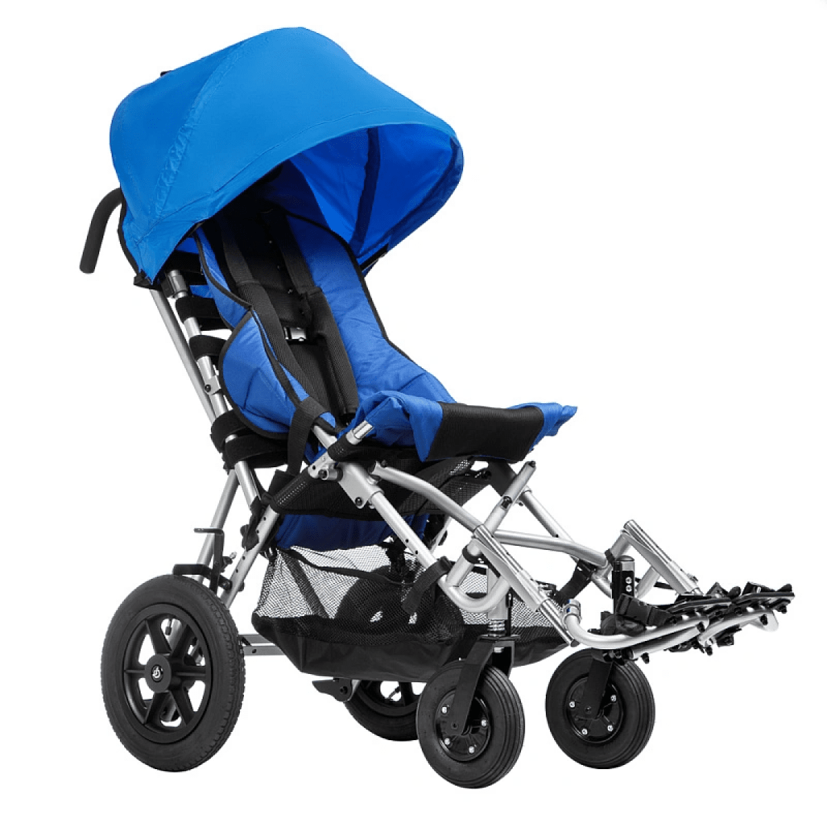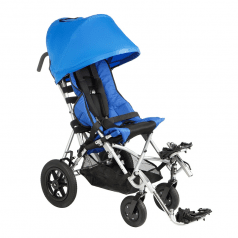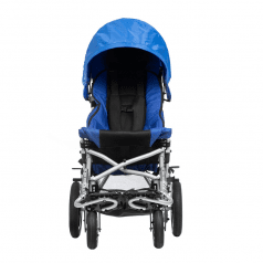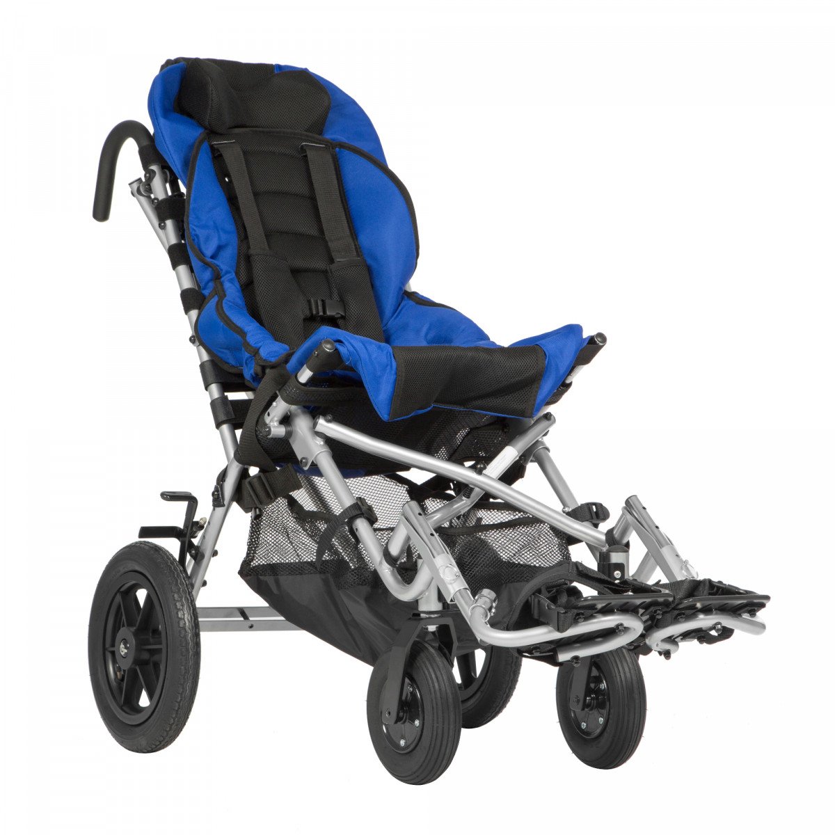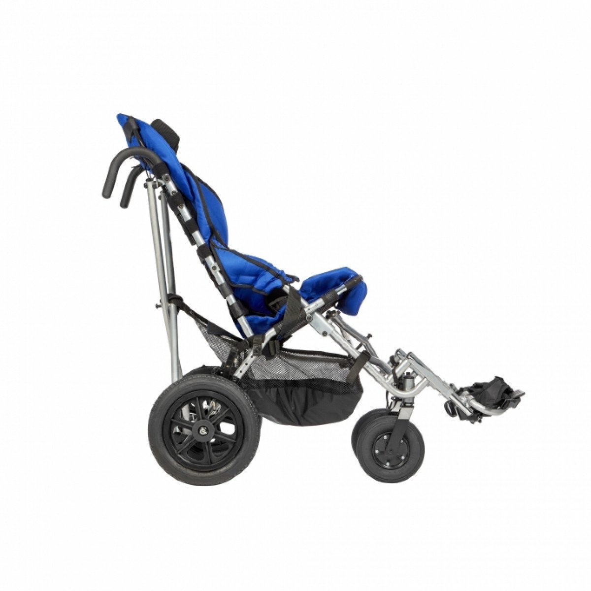 Угол наклона сиденья регулируется до 30°, а также его можно настраивать по глубине. Амортизаторы передних колёс эффективно снижают ударную нагрузку на позвоночник ребёнка, что особенно важно при движении по неровным поверхностям (тротуары и грунтовые дороги). Спинка коляски может быть отрегулирована по углу наклона в диапазоне от 85° до 95°. Также доступна настройка жесткости спинки за счет регулируемых ремней натяжения, что позволяет адаптировать коляску под рост и вес ребёнка. Съёмные, откидные и регулируемые по высоте подножки дают возможность настраивать их в зависимости от роста ребёнка, обеспечивая удобное положение ног.
