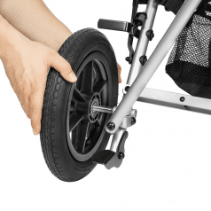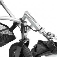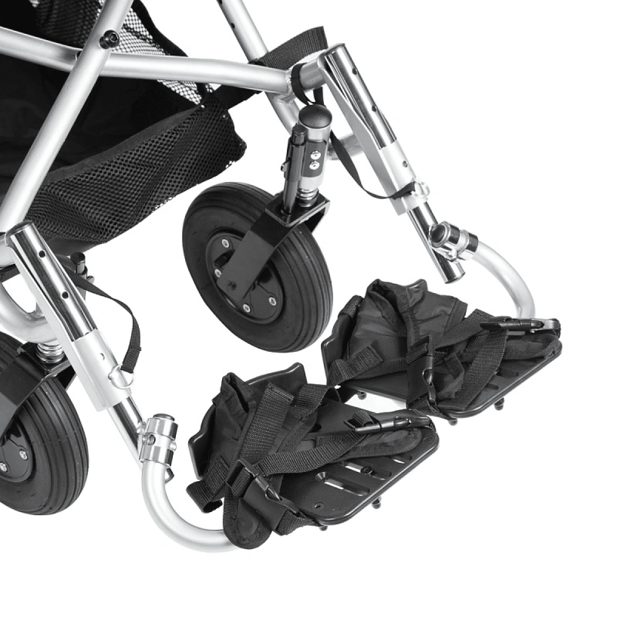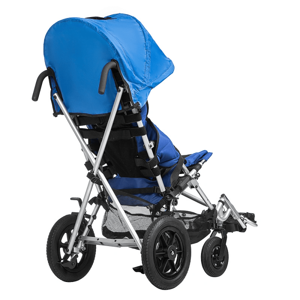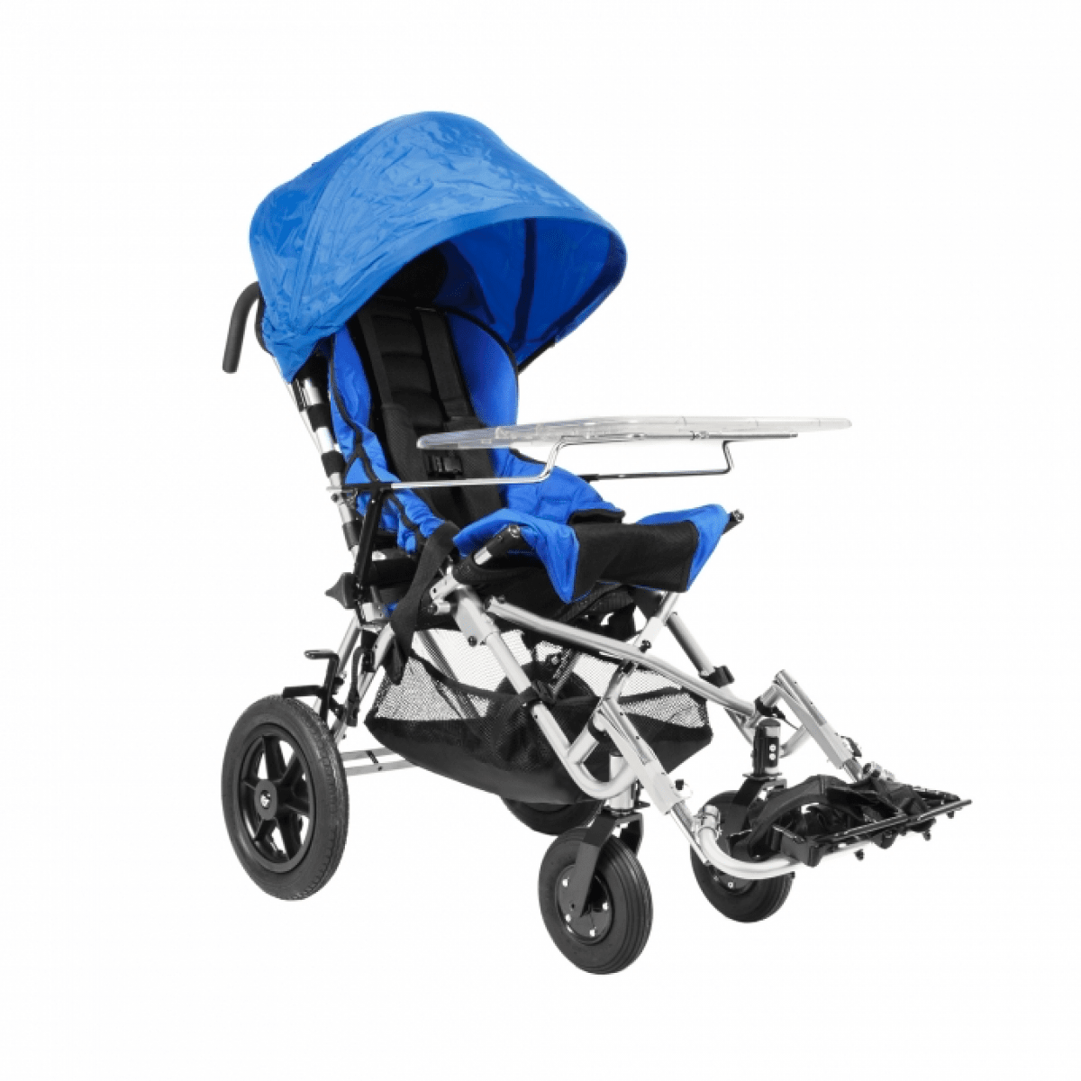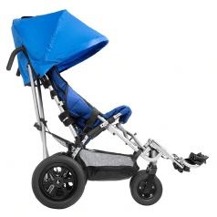 Угол наклона сиденья регулируется до 30°, а также его можно настраивать по глубине. Амортизаторы передних колёс эффективно снижают ударную нагрузку на позвоночник ребёнка, что особенно важно при движении по неровным поверхностям (тротуары и грунтовые дороги). Спинка коляски может быть отрегулирована по углу наклона в диапазоне от 85° до 95°. Также доступна настройка жесткости спинки за счет регулируемых ремней натяжения, что позволяет адаптировать коляску под рост и вес ребёнка. Съёмные, откидные и регулируемые по высоте подножки дают возможность настраивать их в зависимости от роста ребёнка, обеспечивая удобное положение ног.