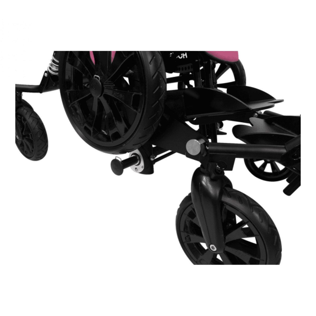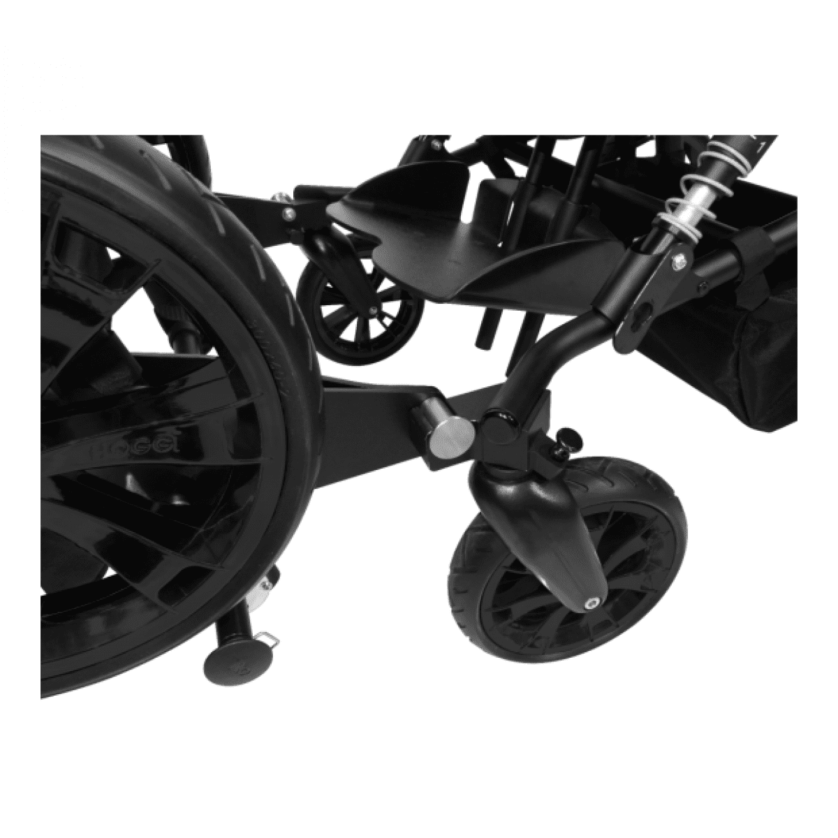 Подвесная система имеет четыре адаптивных режима, что позволяет эффективно сглаживать неровности на дороге, помогая избежать ударов при проезде по сложным участкам. Коляска лёгкая и компактная в сложенном состоянии, что упрощает её транспортировку. Колеса большого диаметра легко снимаются и обеспечивают высокую проходимость и устойчивость.