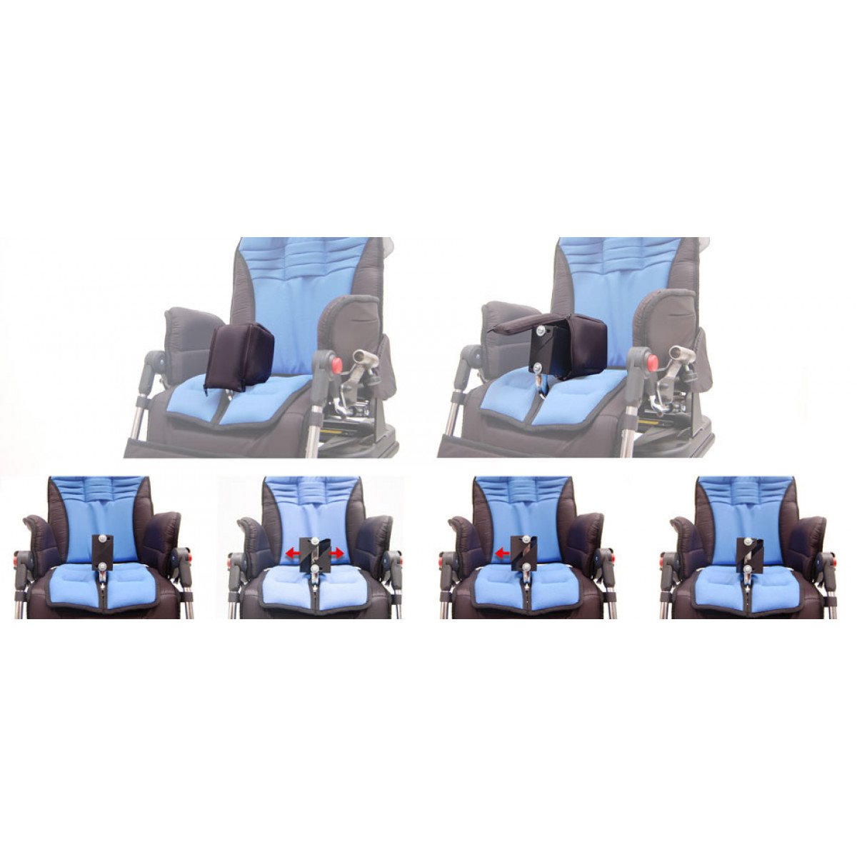 Жёсткая спинка с наклоном до 40° регулируется в высоту до 10 см. (размеры 1-2) и до 15 см. (размеры 3-4), соответствуя физиологическому изгибу тела. Откидная подножка имеет регулировку сгибания-разгибания, а опора для ног может настраиваться по высоте и углу, соответствуя физиологическому изгибу коленей. Встроенный подголовник, находящийся в спинке кресла, обеспечивает поддержание головы ребёнка во время любых изменений в положении сиденья и спинки.
