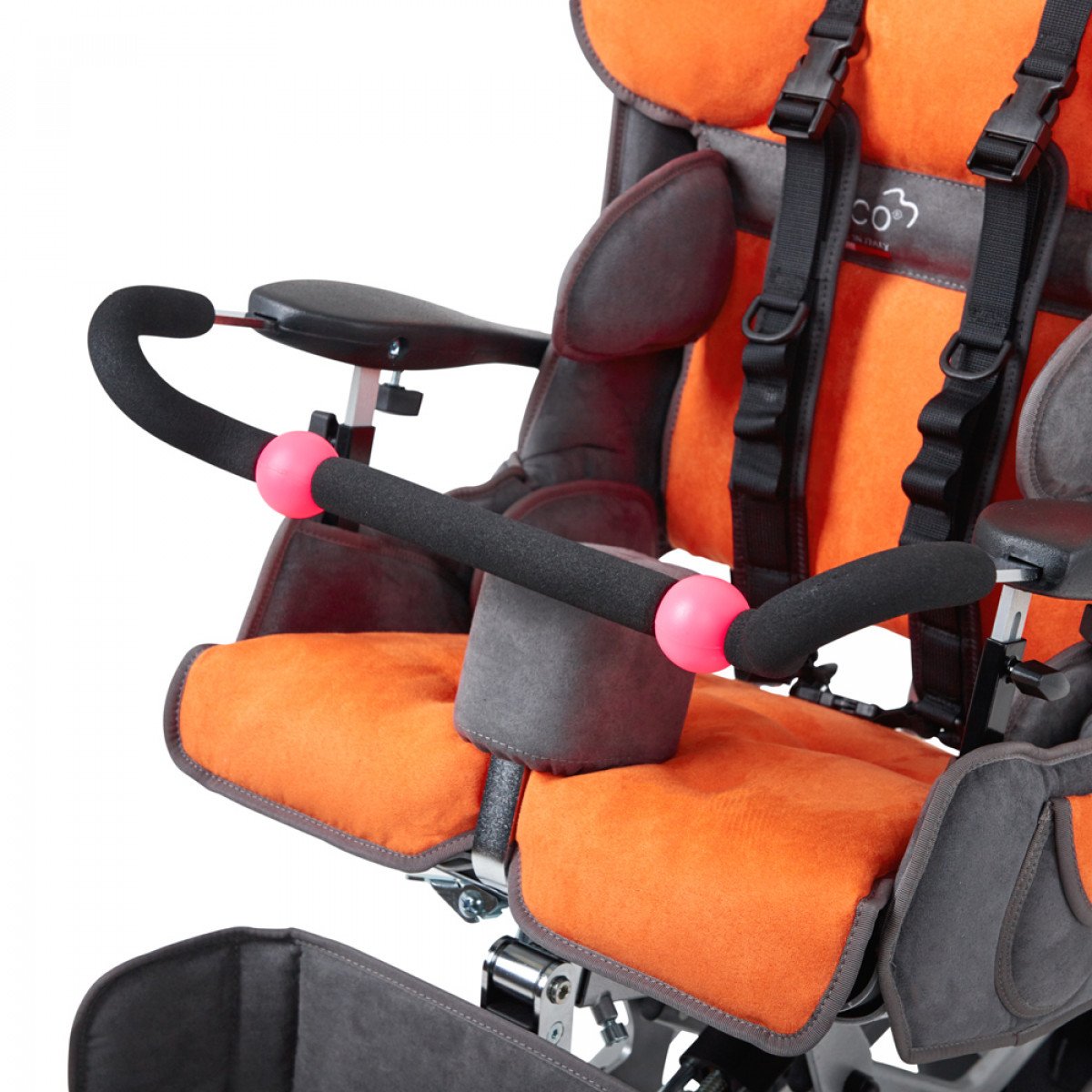 Мягкая дышащая обивка кресла снимается и легко чистится. Для комфортного пребывания предусмотрена встроенная подушка против пролежней. Средний слой обивки амортизирует движения ребёнка, а внутренний слой оснащён боковыми защитами.