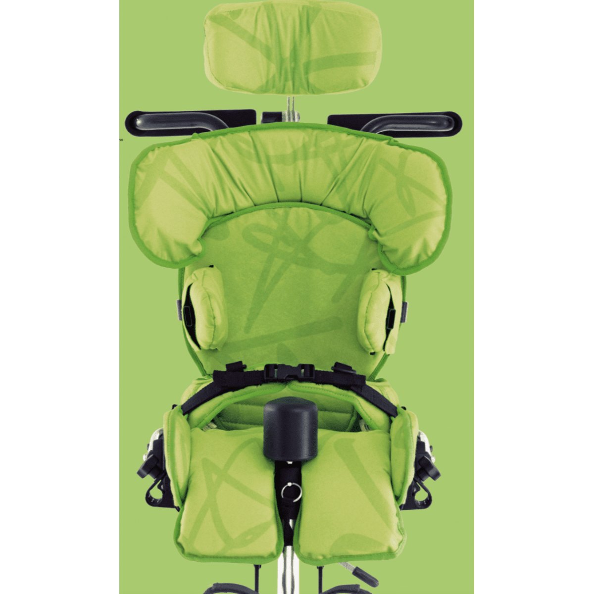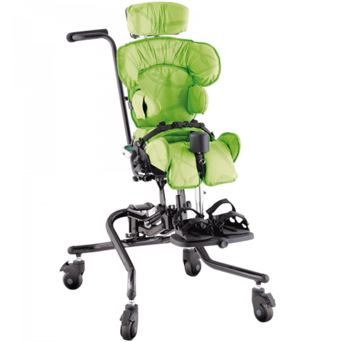 Сиденье, шасси с регулировкой высоты, сиденье с мягкой обшивкой, плечевая поддержка, подножка, сандалии, тазовый фиксатор (р.M), грудной фиксатор «H-style», боковые поддержки грудного отдела откидные, стол, абдуктор, подголовник с боковыми поддержками