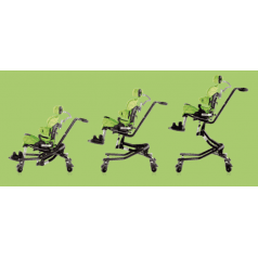 Сиденье, шасси на колёсах, контурный подголовник, стол, опоры для стоп, сандалии маленькие, фиксаторы грудного отдела, туловища, коленей.