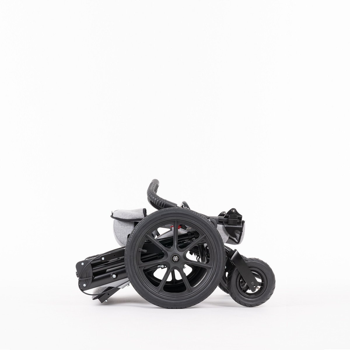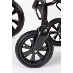 Одной из ключевых особенностей коляски DURO Cross является её прочная и стабильная рамная конструкция, которая обеспечивает устойчивость и безопасность во время прогулок. Коляска оснащена большими 16-дюймовыми ведущими колесами. Они обеспечивают отличную маневренность и устойчивость, что особенно важно при прогулках по сложным маршрутам.