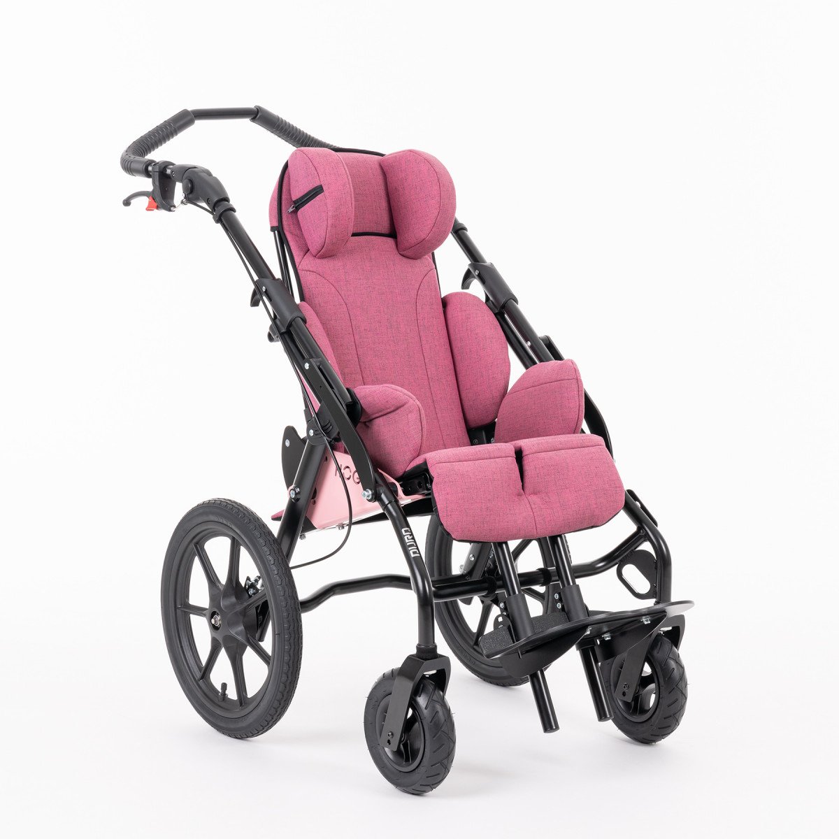 Покупая коляску DURO, вы можете выбрать один из двух доступных размеров. В стандартной комплектации коляска поставляется с индивидуальной регулировкой угла наклона спинки, что дает возможность создать комфортную позу для ребёнка. Плавно регулируемый держатель подножки позволяет изменять угол наклона, чтобы обеспечить максимально расслабляющее положение для ног ребёнка. Также стоит отметить наличие большого диапазона регулировок спинки коляски: её угол наклона можно быстро изменить с 90° до 120° с помощью специальной системы стопорных болтов. Коляска предлагает возможность изменять угол сиденья. Его можно предварительно установить на 16° или 20°, что позволяет выбрать более активное или расслабленное положение.