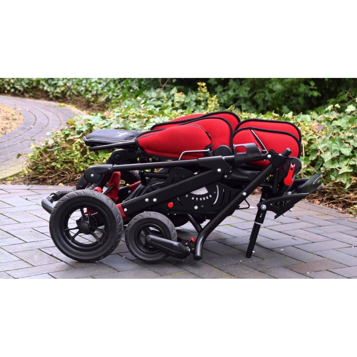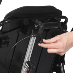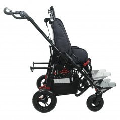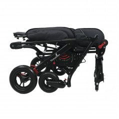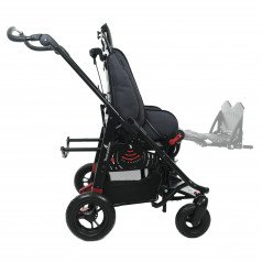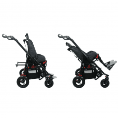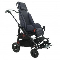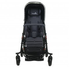 Одним из преимуществ модели является её лёгкость и компактность в сложенном состоянии, что делает её удобной для транспортировки. Коляска доступна в двух различных размерах и предлагает пять цветов обивки на выбор. Она также оснащена специальным эксцентриковым рычагом, который позволяет без труда регулировать угол наклона подножки. Мягкая подвеска, встроенная в раму коляски, эффективно поглощает вибрации, что обеспечивает плавный и комфортный ход, даже по неровным поверхностям.