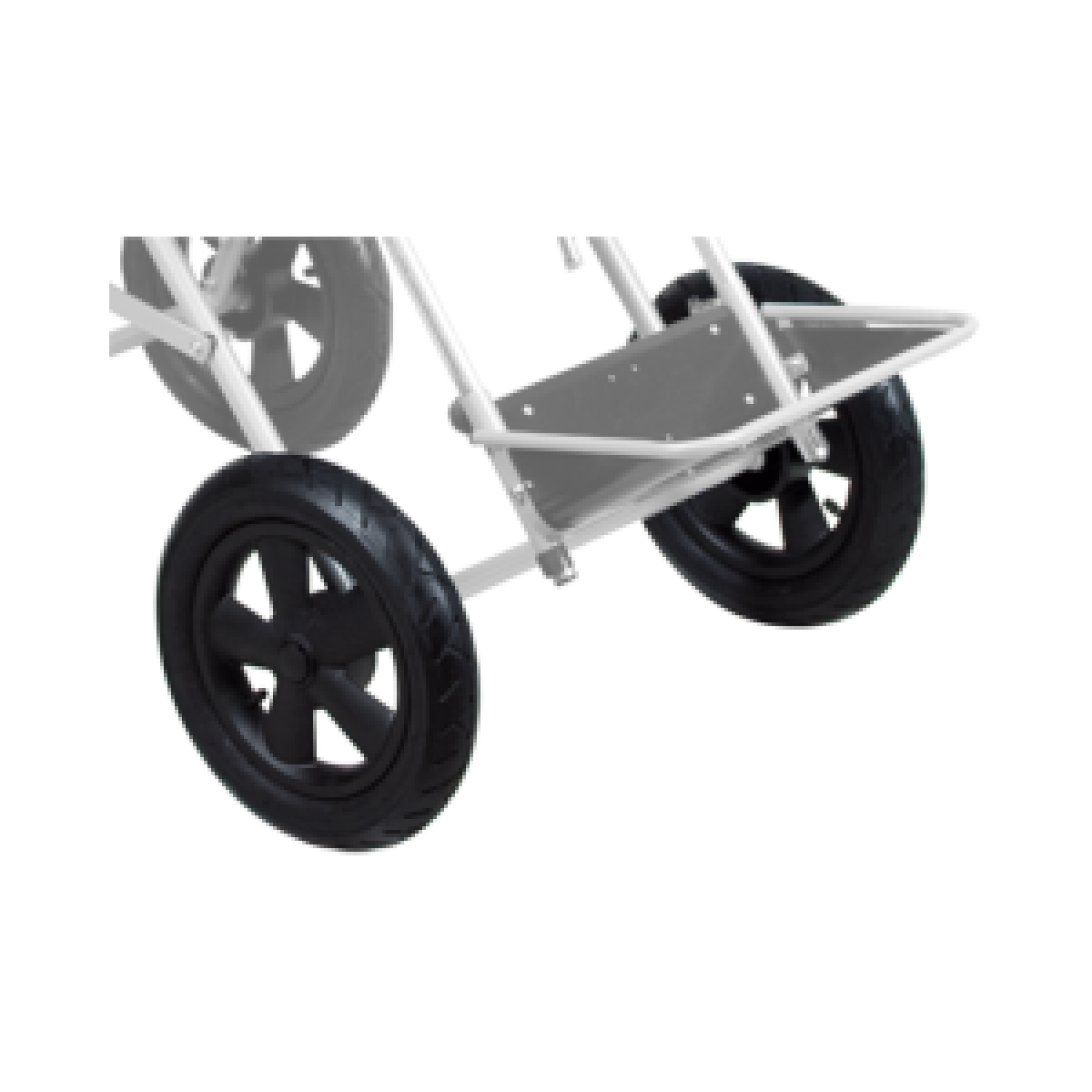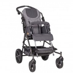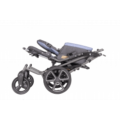 Рама расположена на больших колёсах диаметром 20 и 30 см, с литыми дисками, что позволяет использовать коляску на любой неровной поверхности. Поворотные передние колёса облегчают передвижение по плохой дороге и преодоление препятствий. Конструкция выполнена из прочного, но лёгкого сплава с порошковым покрытием. Коляску можно без усилий сложить до компактных размеров, облегчая тем самым её перевозку и хранение. Её можно транспортировать в багажнике обычного автомобиля или хранить в небольшой квартире.